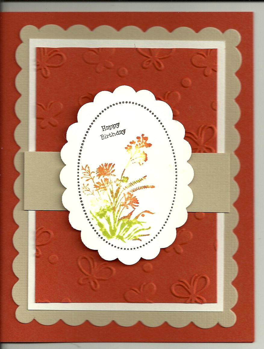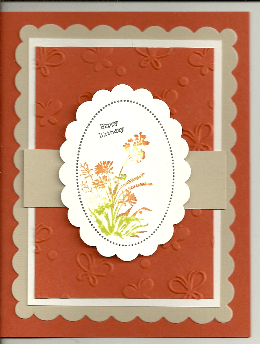Floral Garden Uncategorized Here is an card using The Paper Cut, Inc scallop layers. I’m in love with them at the present time! So quick and easy. G98 Floral Garden Sm; CC18 Fun Cube Sm; G231 Oval Dots Giga; Butterfly Embossing Folder by Sizzix
