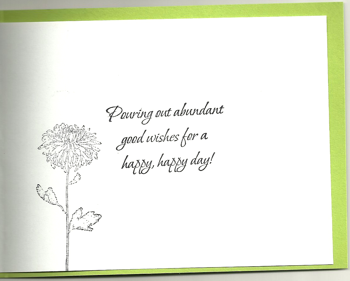 Really Love the Green and Black Birthday This inside saying is a great saying because it can work for a lot of different cards; birthday, mother’s day, just because…you get the picture. E222 Pouring out Abundant…