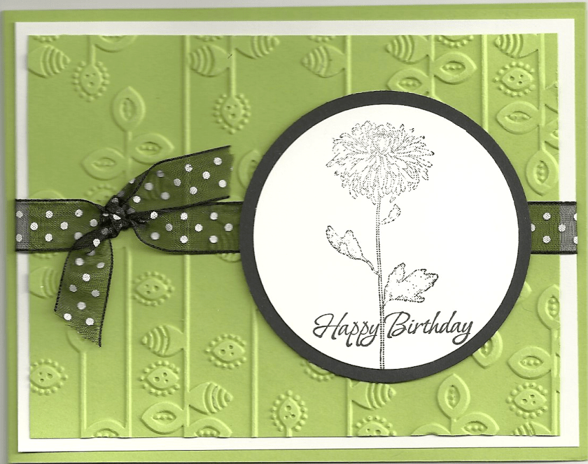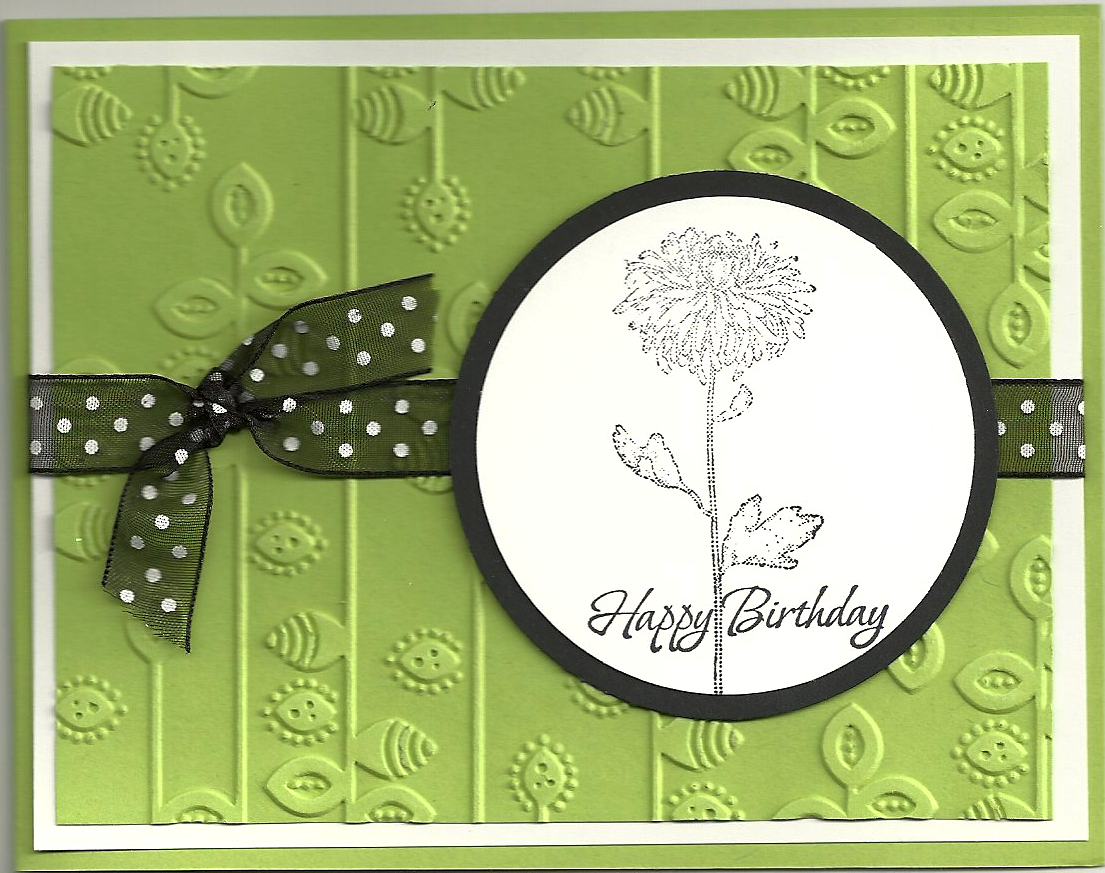 Happy Birthday Black & Green Birthday Love the simplicity of the black and green. Next week I have five cards with all the same layout but very different. Watch for it! and Yes, I did use my stamp positioned to place the Happy Birthday! Love that tool.