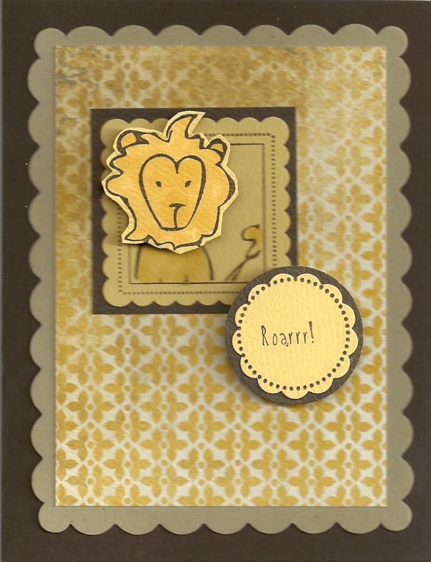 Good Morning! We are off to Fort Wayne, IN this morning! Only a seven hour drive so that is easy! I have a scarf project I am working on in the car so anxious to get it going. This Lion card is also one of our new Make n Takes! It’s Adorable! Hope to see you in Fort Wayne if you live in the area. Here is the website with information. www.toomuchfunpromotions.com
