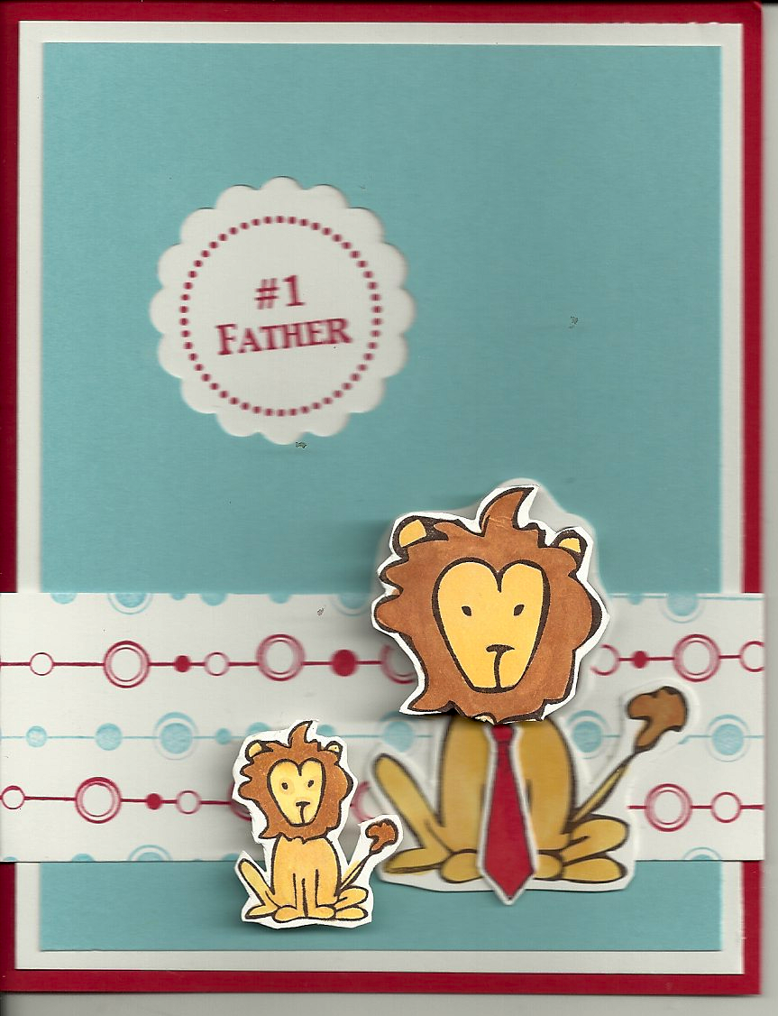 It’s the last of the Red Hot and Berrylicious week!  This is my favorite card of the week.  The HH20 Line of Dots is one of my favorite background stamps.  I love how Karissa colored the Lions and put a tie on the Papa Lion….just too cute!