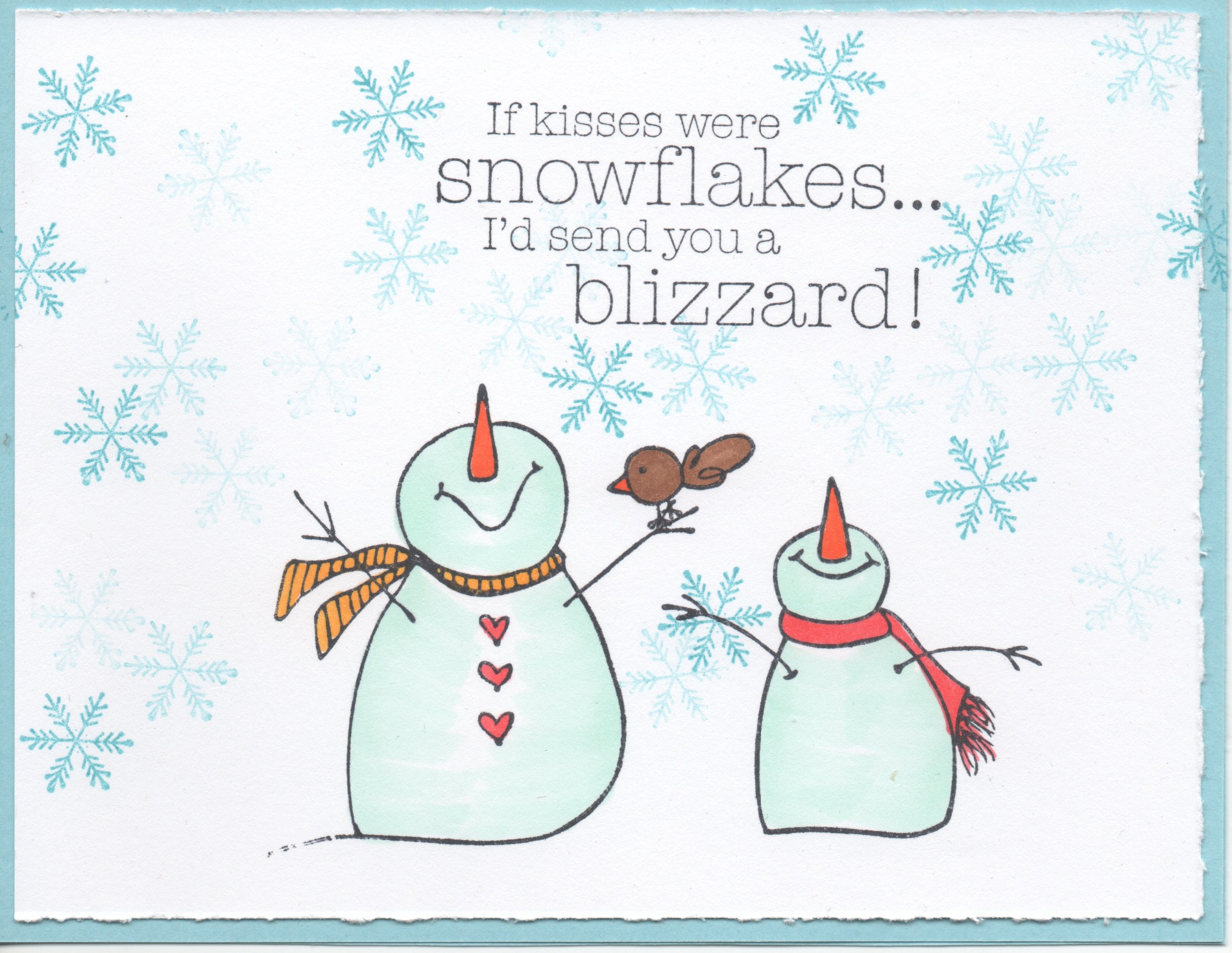 Stamps used: E246 If Kisses were Snowflakes, EE37, A240 KB’s Arrow Snowflake, BB56 KB’s Birdbath Bird
