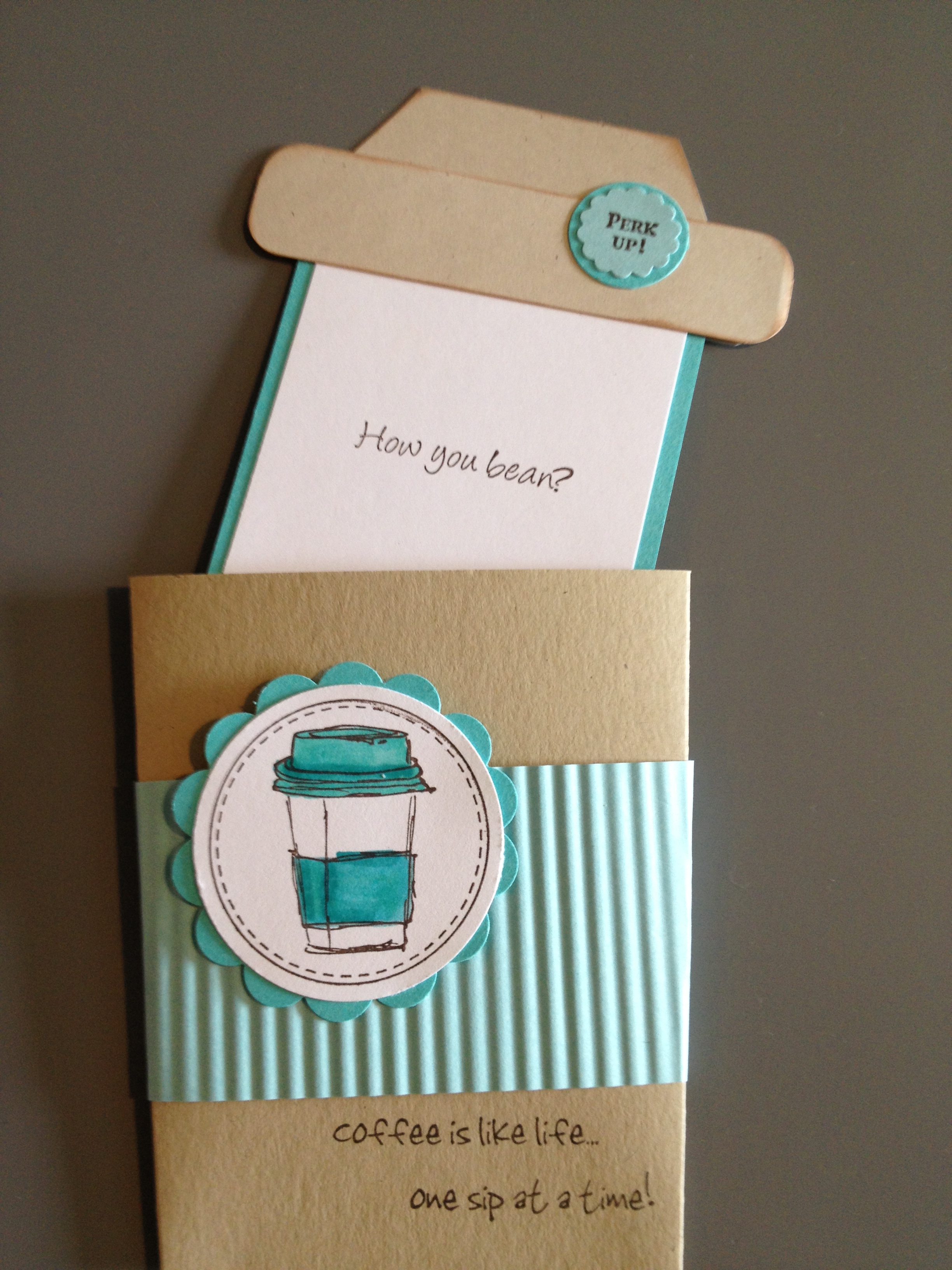 I love the colors on this coffee card. It’s berrylicious and blue raspberry with fossil background