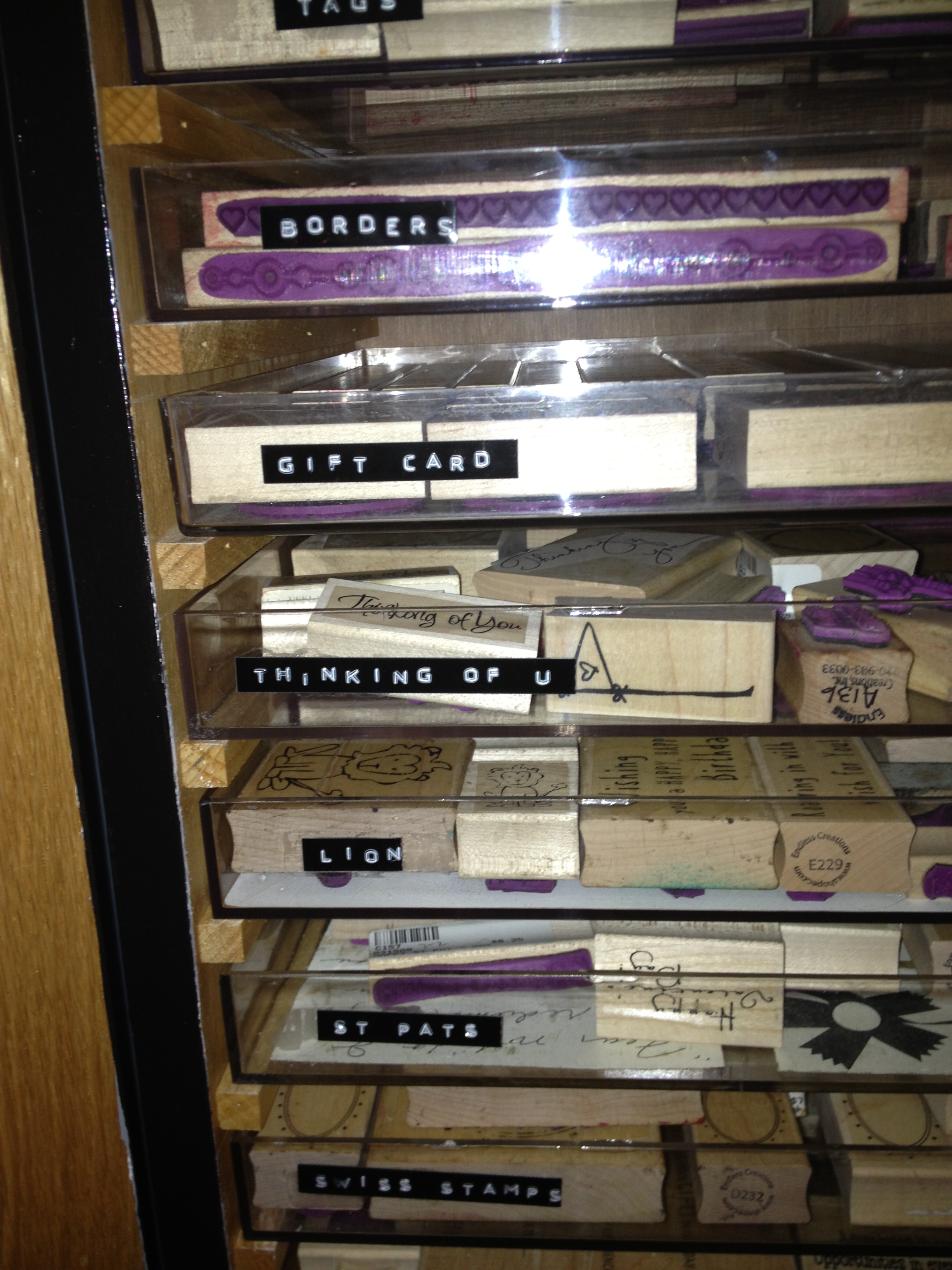 One of the best things that you can do for organization is to LABEL things! I’ve been labeling my stamp cases. I was going to use a chalkboard type things so I can change it but didn’t really work the way I wanted it to so we resorted to the Dyno Labeler!