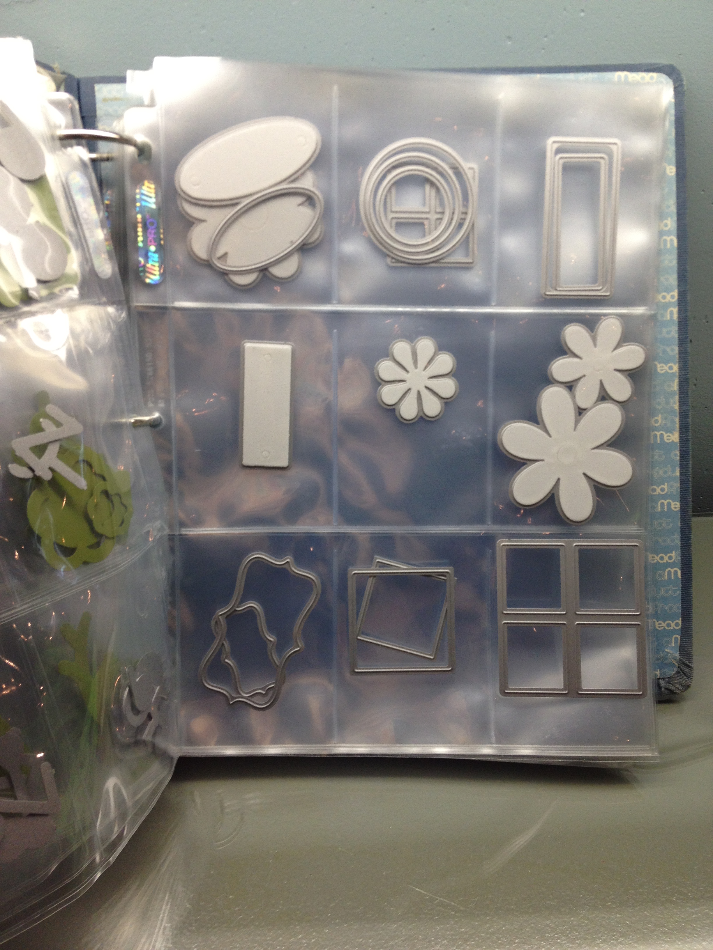 So our son Travis was a huge Pokemon fan when he was little and he had a huge pile of them all organized in this binder! Well he no longer cares about Pokemon and so his cards went to Goodwill (I bring as much to Goodwill as I buy! :)) but I kept the binder and use it for my little dies! It works well!