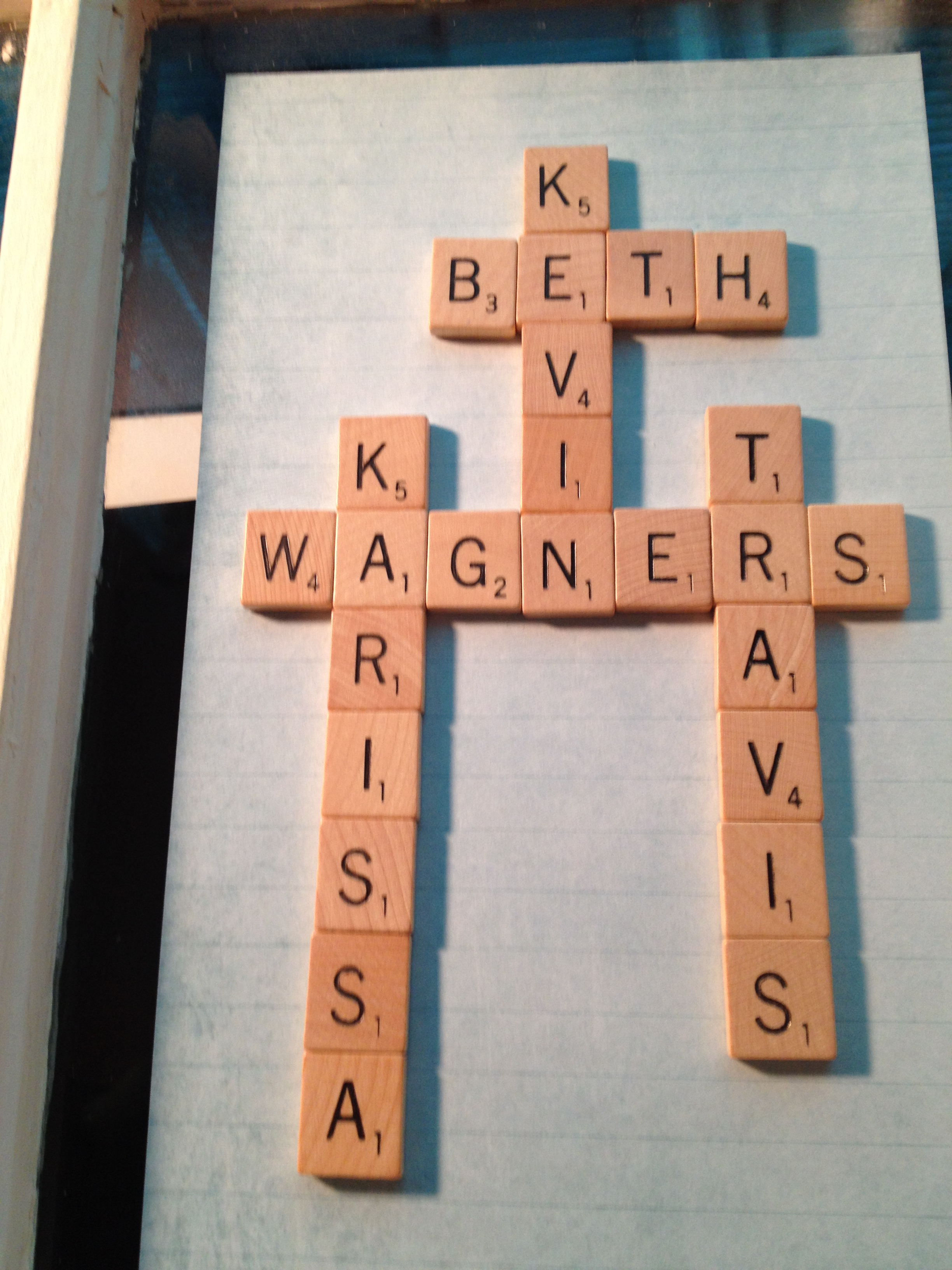 I love scrabble letters. Have used them for a few things. I made clean/dirty signs for dishwasher. I will try and show them tomorrow. Our names worked out perfectly with the scrabble letters.