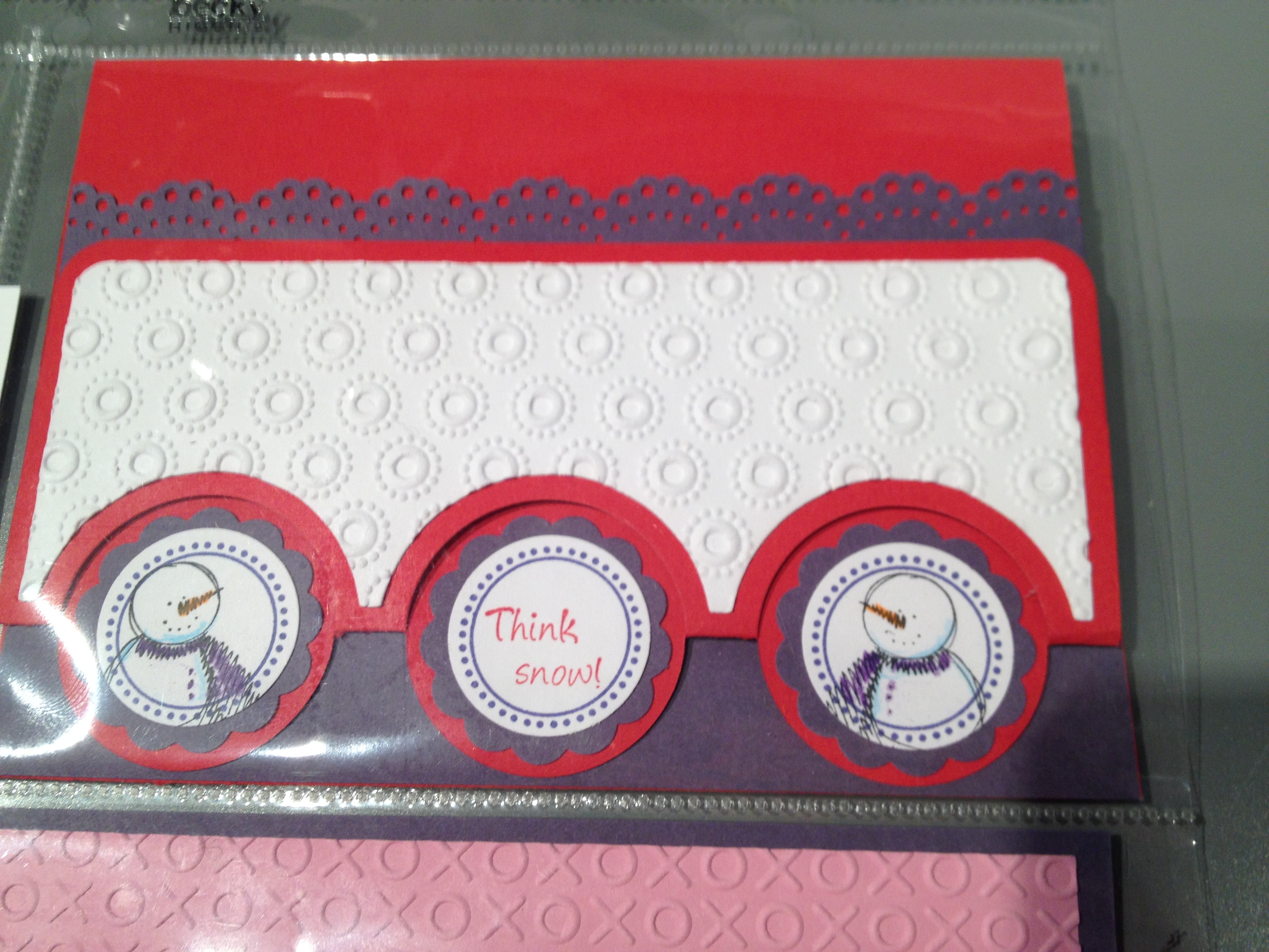so this card I used the Sizzix die but extended the end that seems short to me. I extended it by not placing my top cutting board over the end. If you look in the comments there are a few instructions from customers that show other ways to extend and there is a you tube video showing how to extend. Love the purple and red…reminds of the purple hat ladies clubs!
