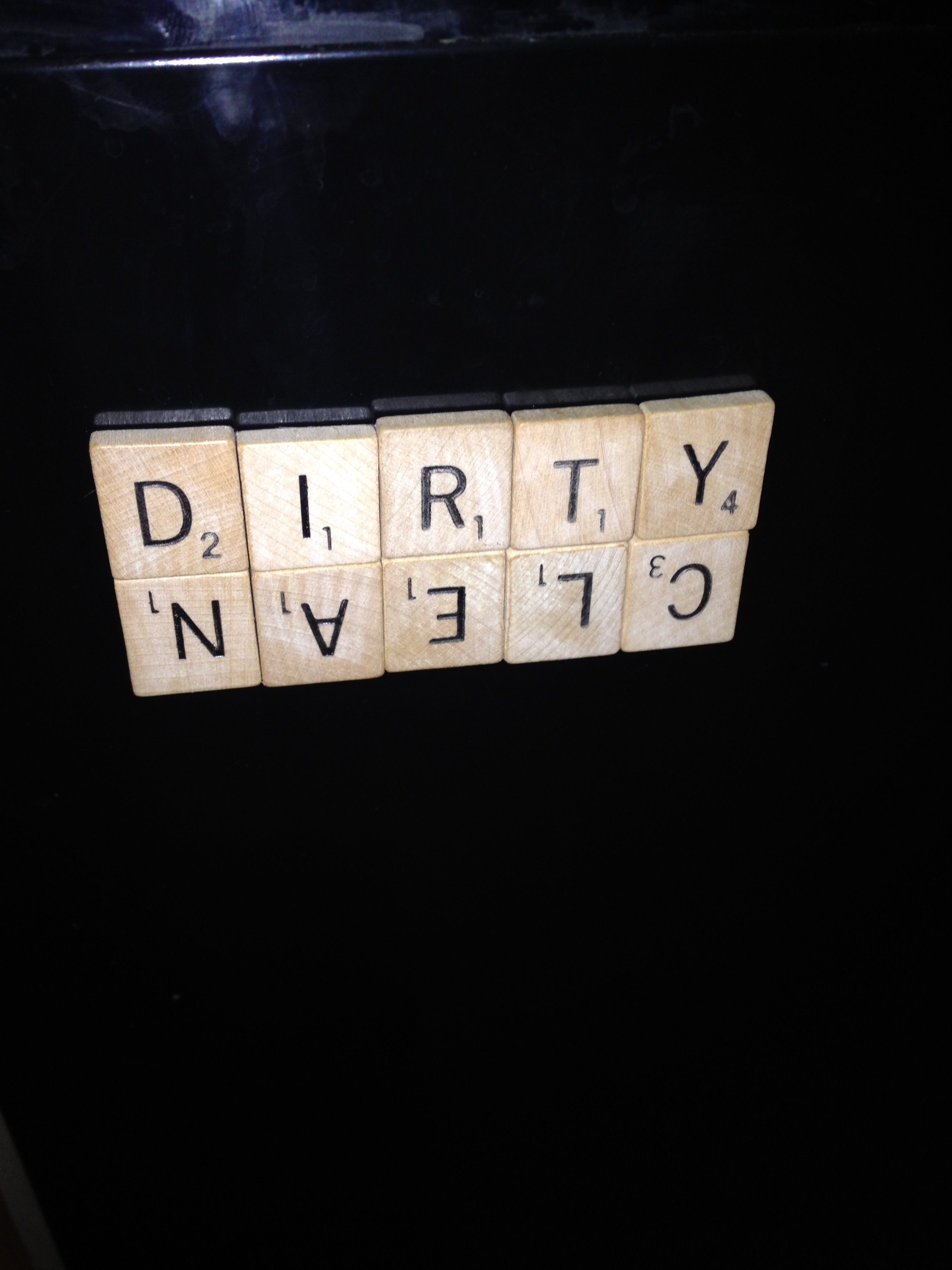 Here is my dishwasher with the clean/dirty signs made out of scrabble letters…