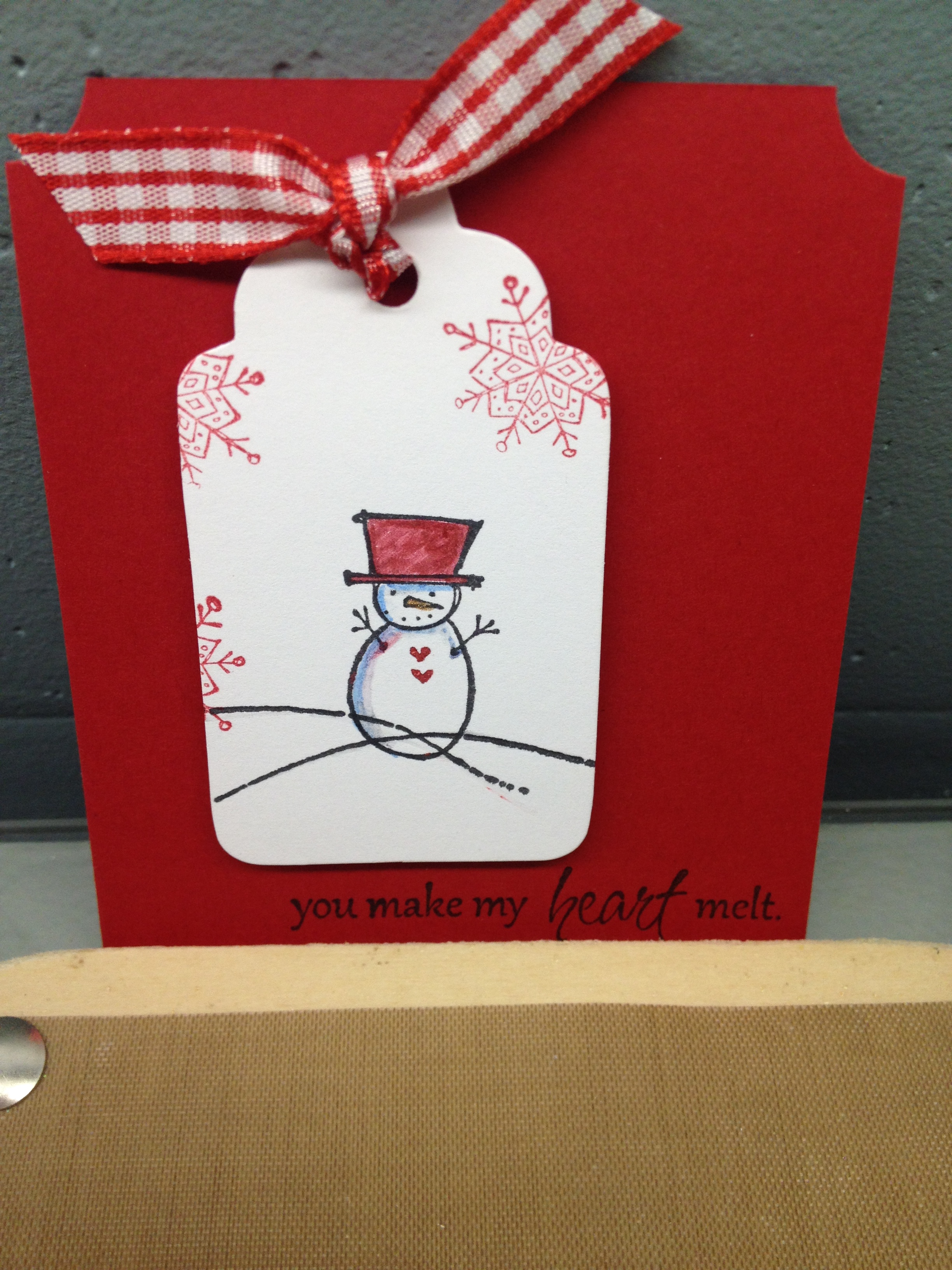 Now to the card, this little snowman is so darling and I think he matches the font and words so well. Sorry, it is a bit hard to tell but the card is a pearlescent white which is really pretty and shimmers. Thought about adding something more but liked the simplicity too much.