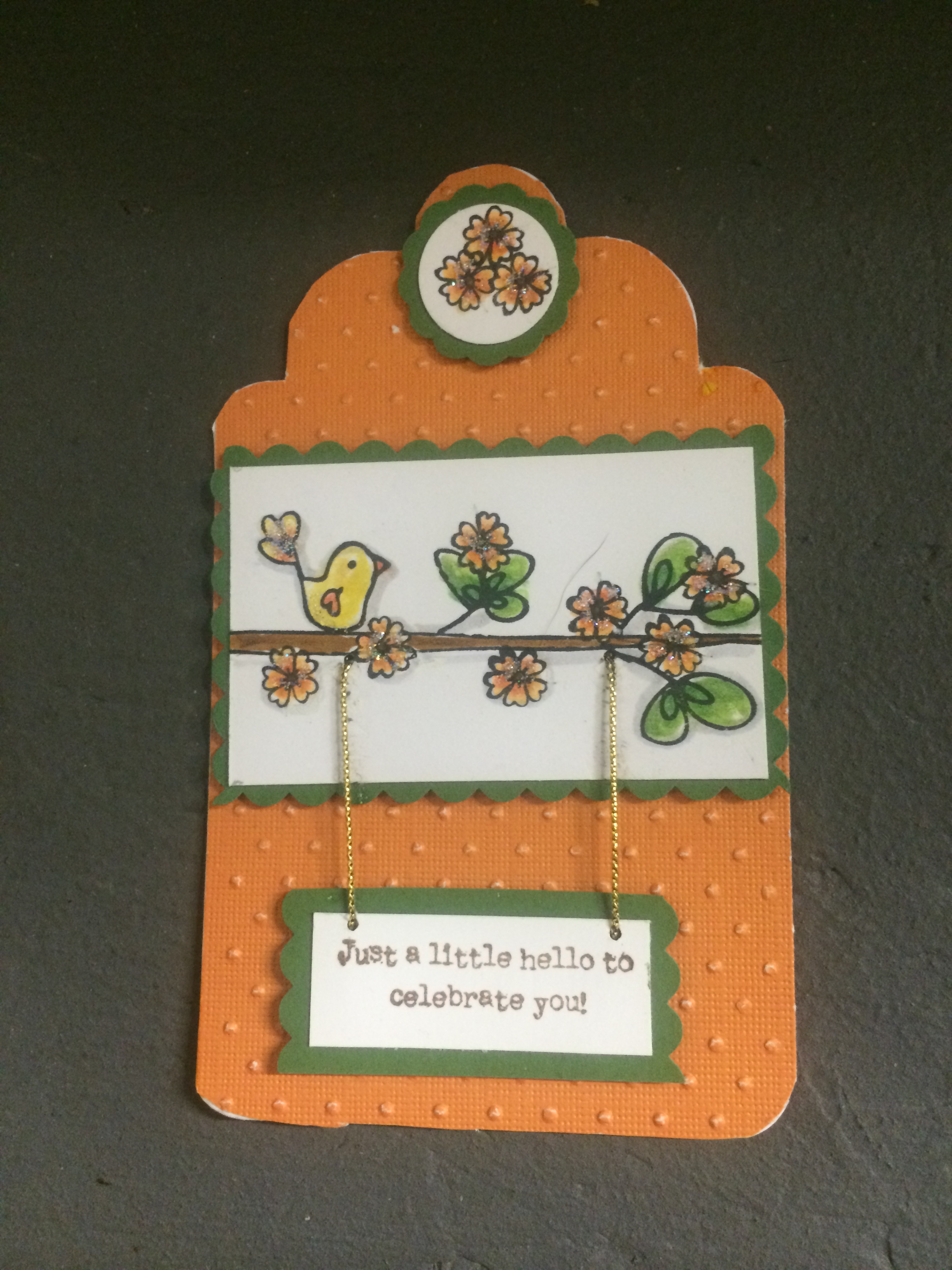 how cute is this adorable tag! This was made by a customer Sharon. The flower stamp is off the C191 Flower in a jar stamp…how clever! Contemplating a MNT with it??!!