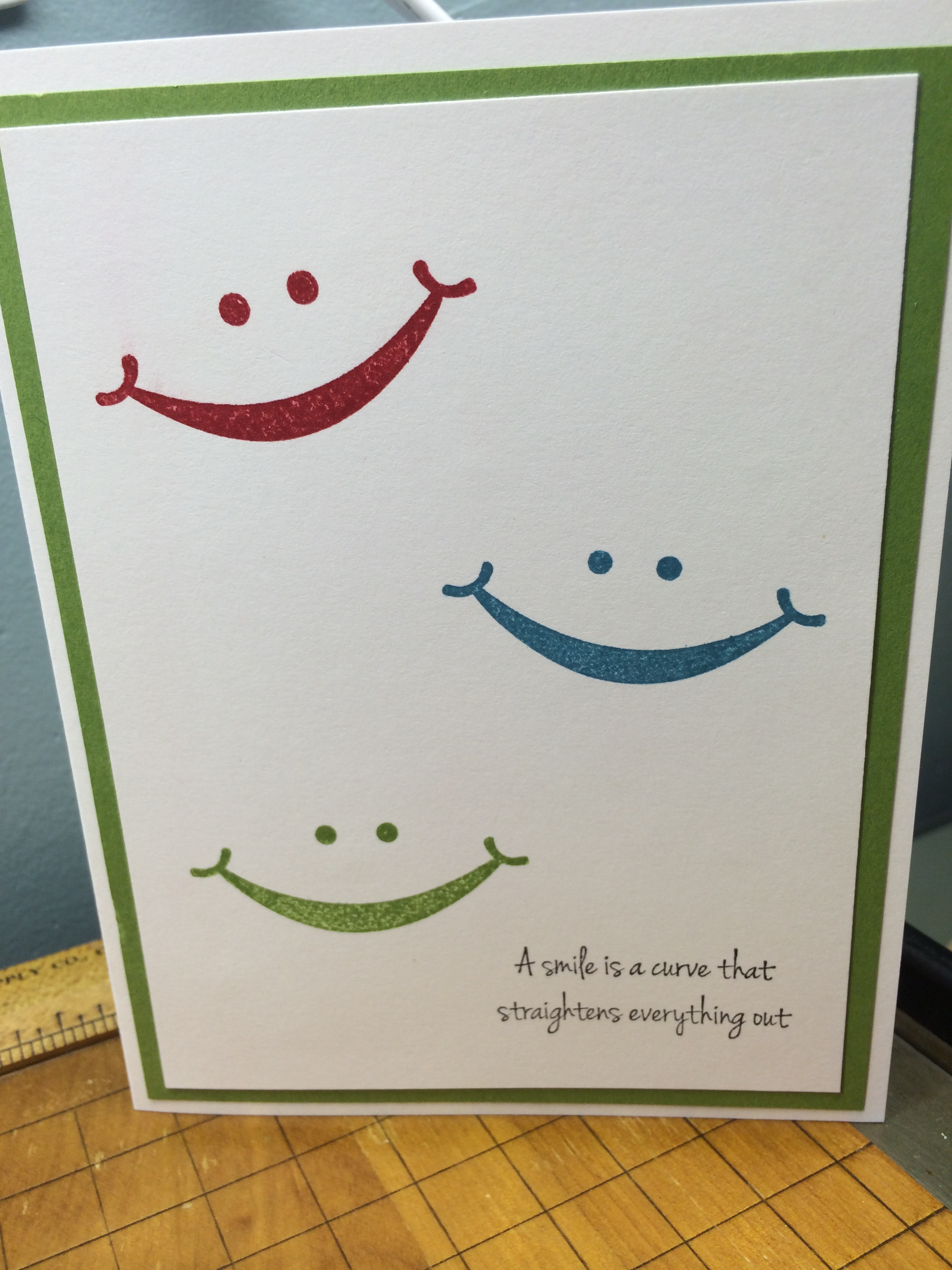 Here is a fun card! We re-sized the smile face and it is so cute! We are smiling today as we await all our family to arrive for the wedding!