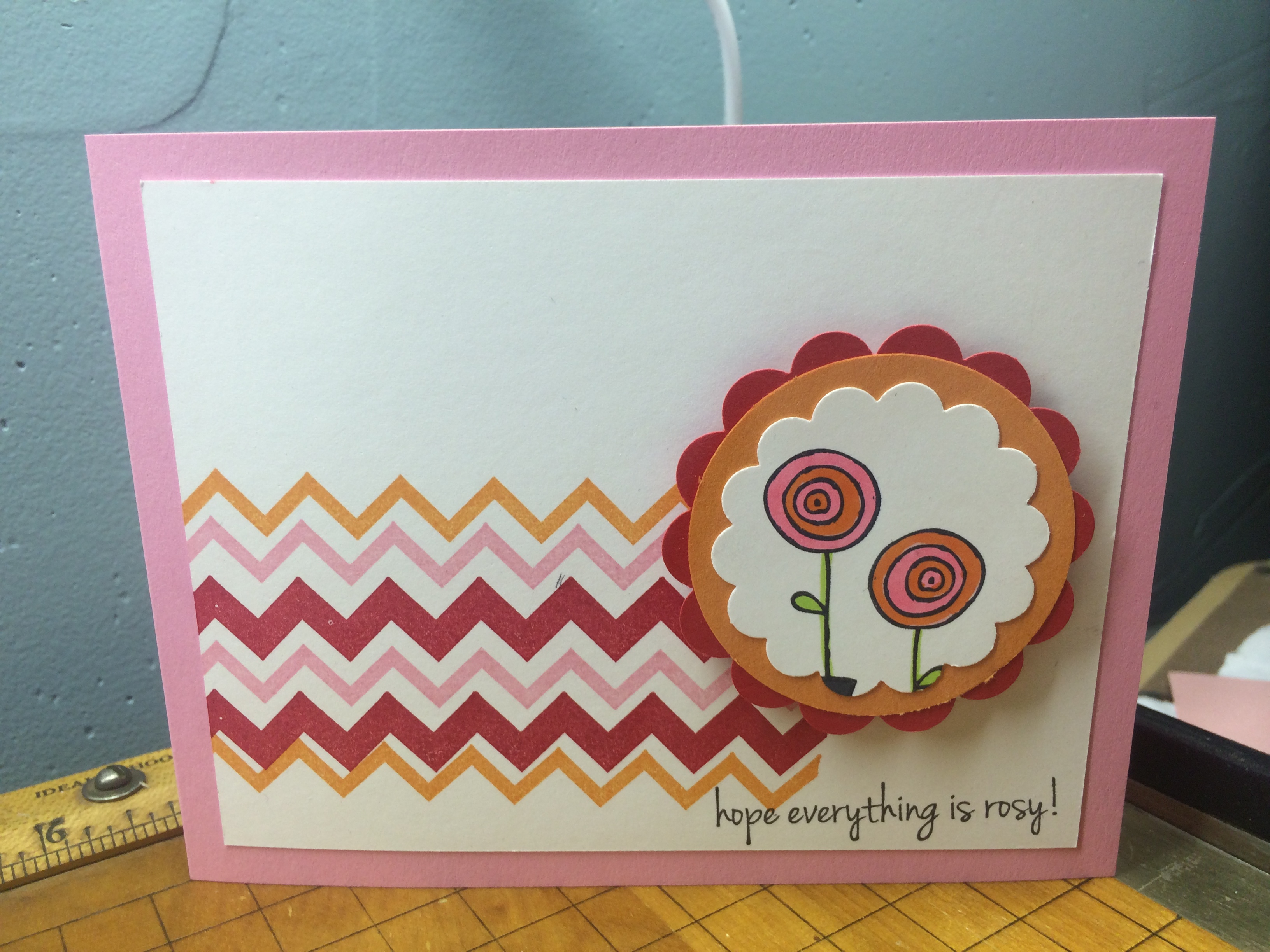 Everything is rosy here since I am all packed and ready! With my time this afternoon I will be getting some new make n takes together. My brother machine helped me get ready! That machine is amazing! I needed to punch 120- 2.5″ scallop circles and 240- 1.25″ scallop circles for our project on Friday night in Orlando. That would take forever! So I loaded the scallops in my brother machine and in 12 minutes I had 81-1.25″ Scallop circles! AND during that 12 minutes I was doing something else productive!