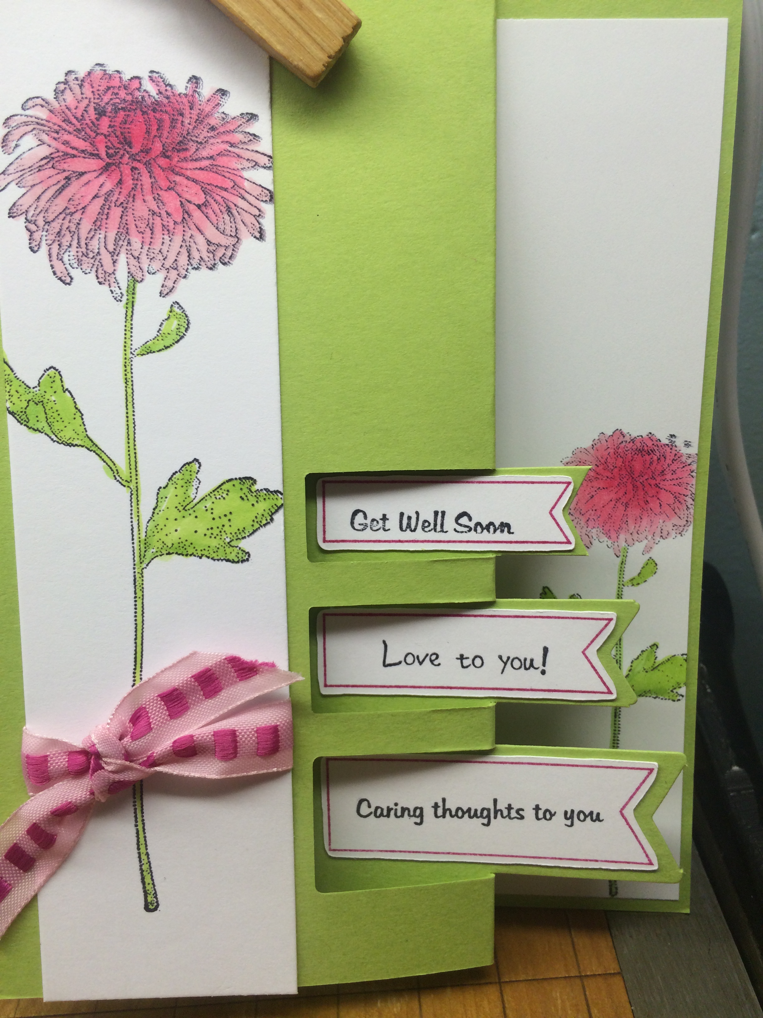 Get Well SoonAnother Triple Flag Card! Love them! My new Favorite! I like doing the three different stamps on the flag but I was thinking how nice it would be to have one stamp that does all three words…so we made some new stamps…here they are!