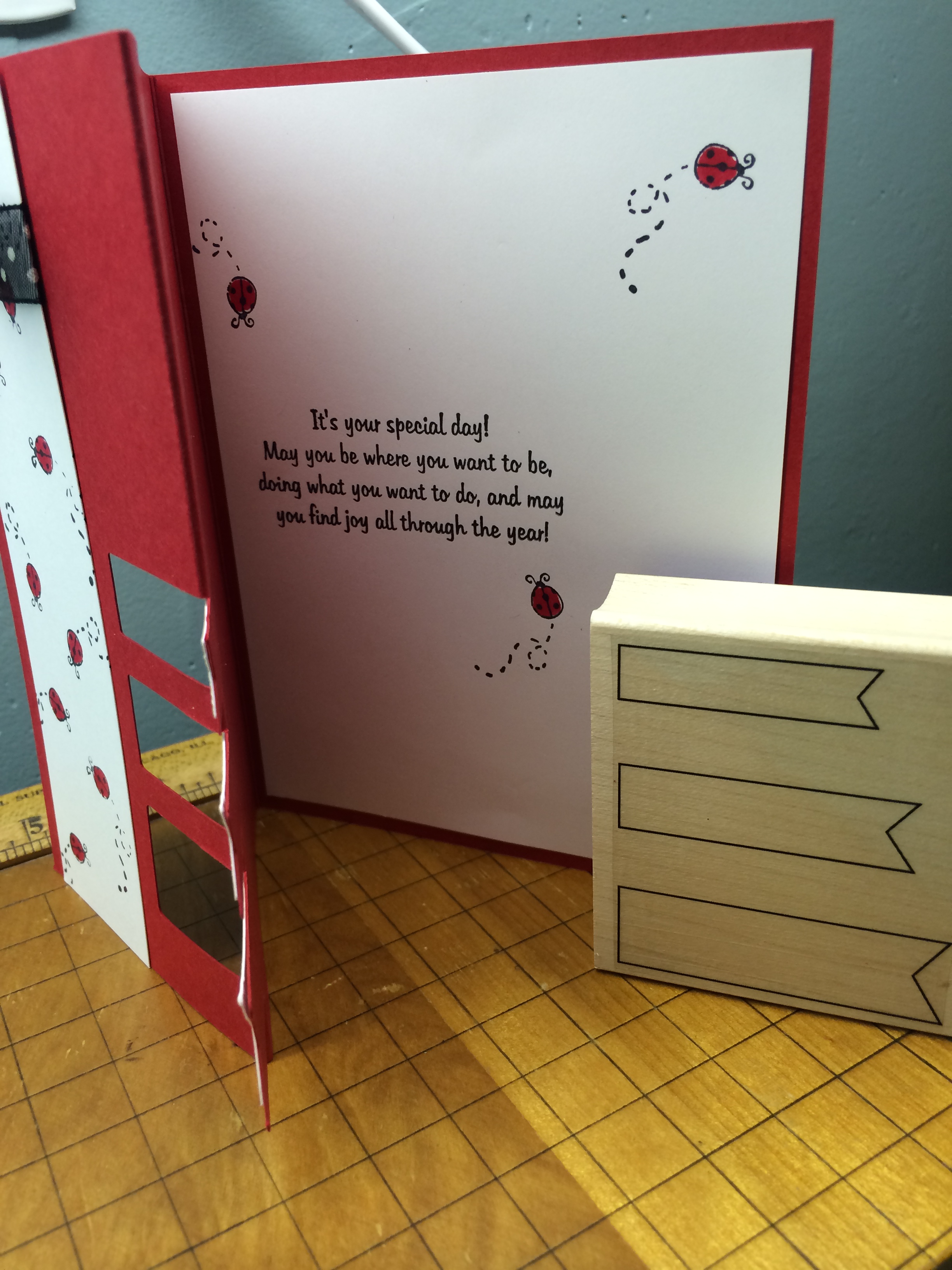 ok so do you ever have one of those days??? Gasp, I should maybe just go back to bed! My day didn’t start out to bad except that I slept in a little later than I wanted too so I was a bit annoyed with myself. But I do love this ladybug card that has one of our new stamps that was designed to go with The Paper Cut, Inc Flag Paper! The flags cut beautifully on the brother machine. Which, by the way, we put Bill Me Later with Paypal on our website so you can make payments on the machine!