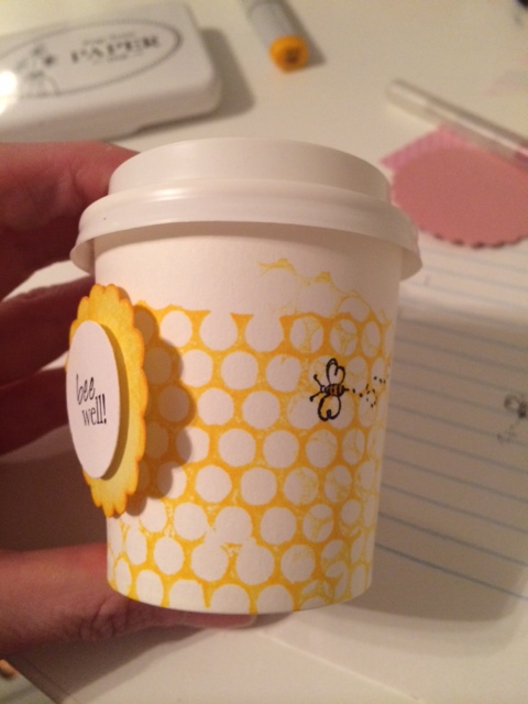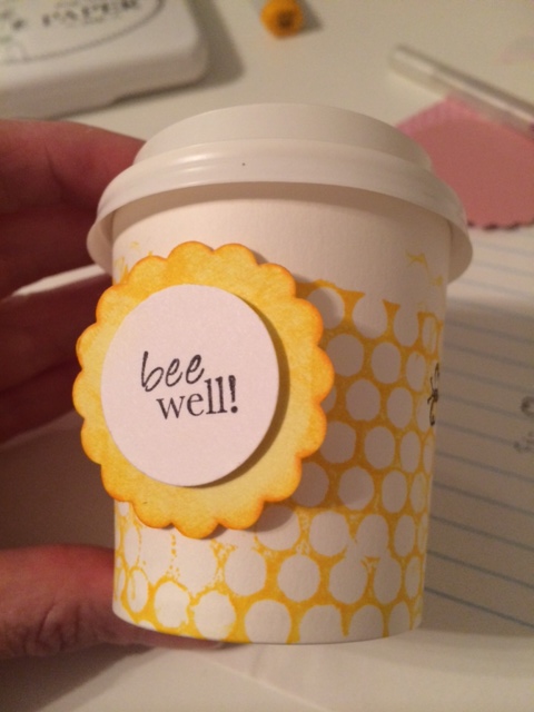 how amazing is this little espresso cup? Karissa sent these pictures to me last night and I LOVE the cup. She actually stamped right on the cup. So I was trying to figure out how she did it and had it look so cool. She generally uses cling mount due to a lack of space at her place so I was thinking she just wrapped it around but she said that she lays the stamp down and rolls the cup over it! So Cool!