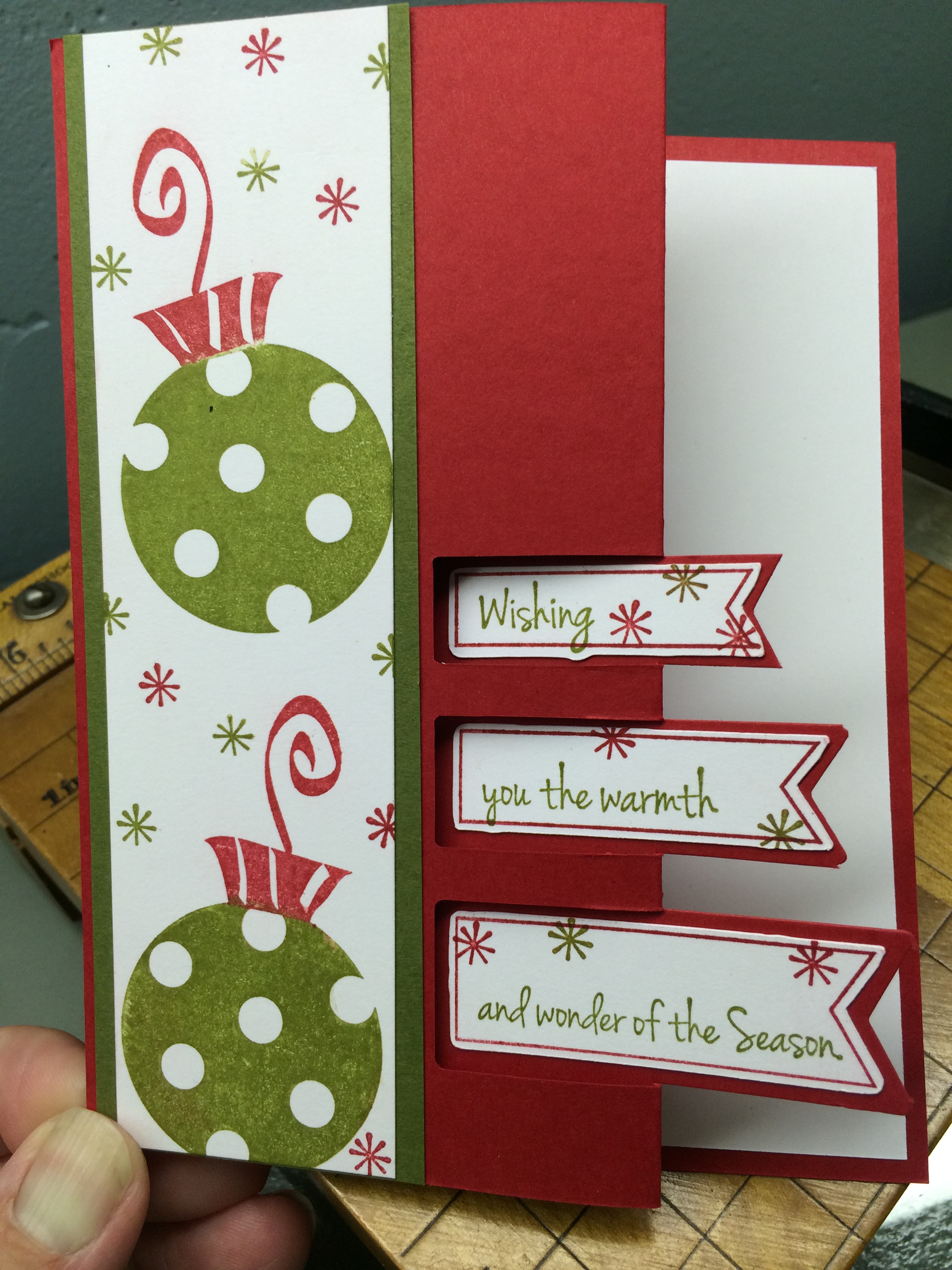 Good day to you all! Here is WI it has been raining and likely will rain all week! That’s ok with all the projects we have going. Here is a Christmas card using the Triple Flag paper and our new warmth and wonder of the season stamp.