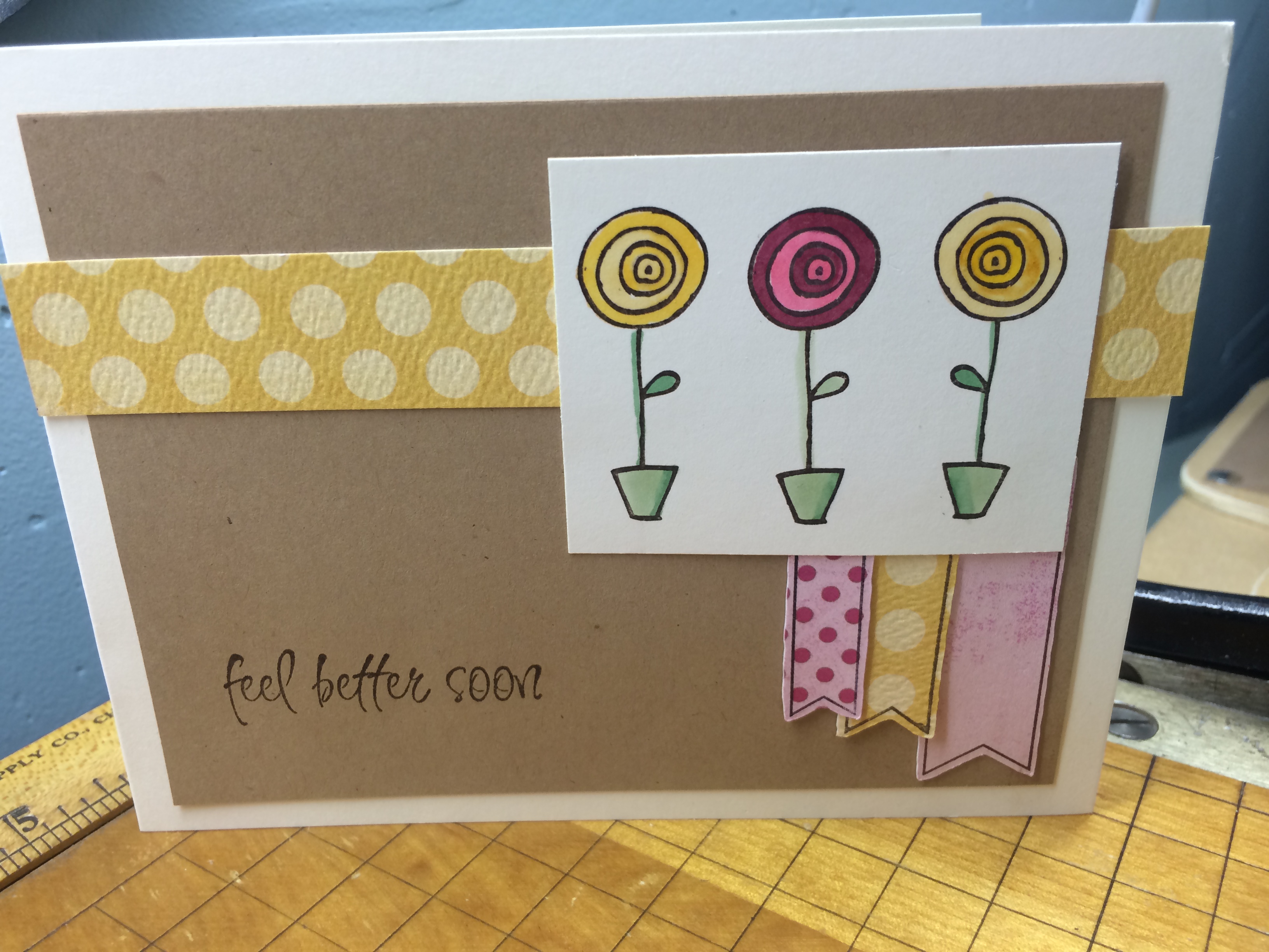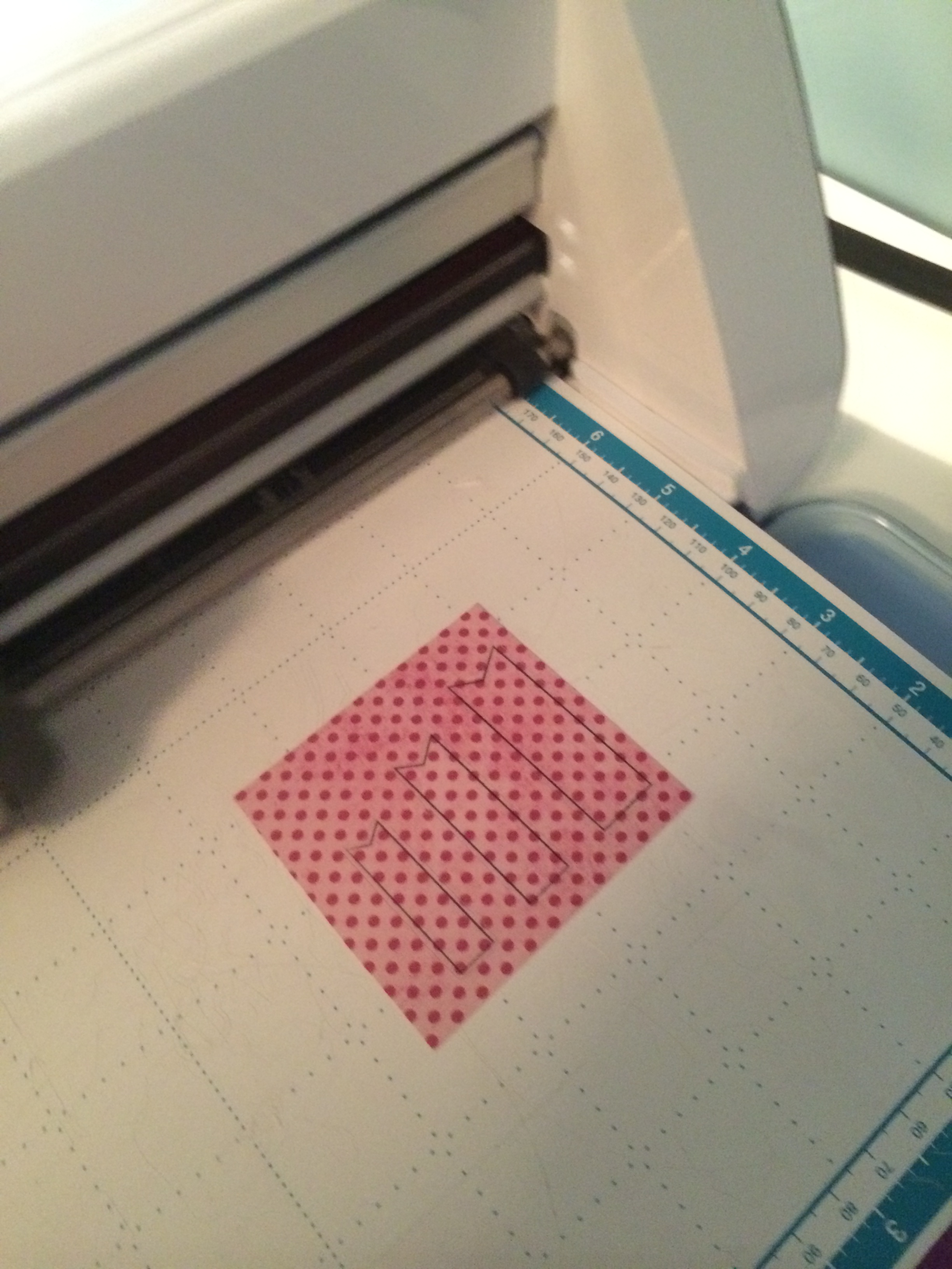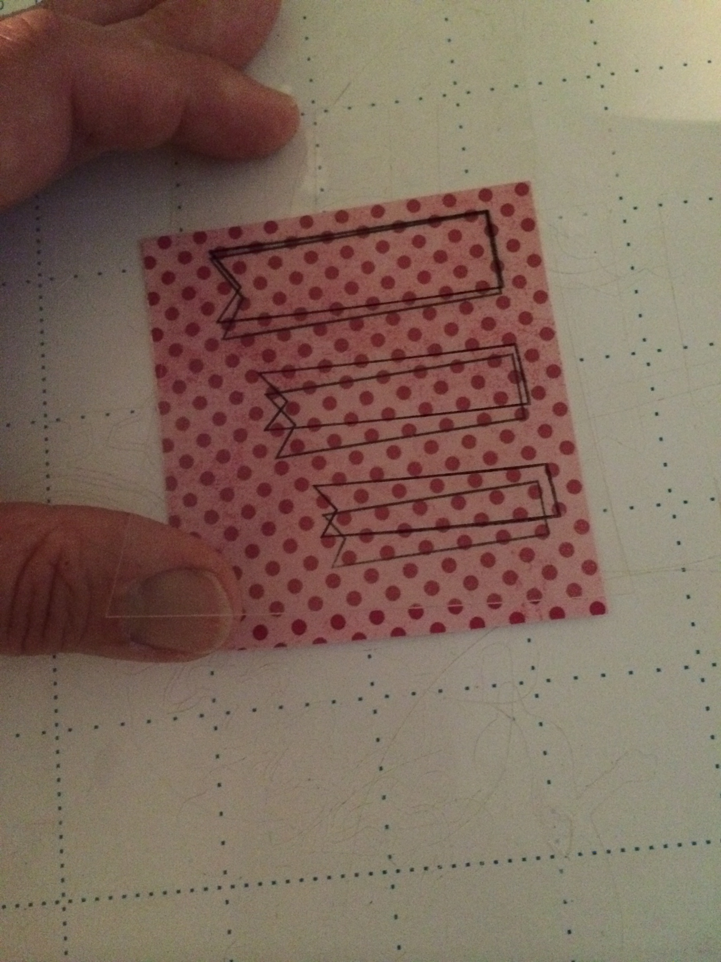 I love sketches because they are such a great starting point. I saw the three little flags and thought of our triple banner flag stamp. I had a little trouble because the pink with red polka dots paper had trouble in the ScannCut. Sometimes if the patterned paper is too patterned the scan doesn’t really know what to look for. So I tricked it a little. Here is what I did.