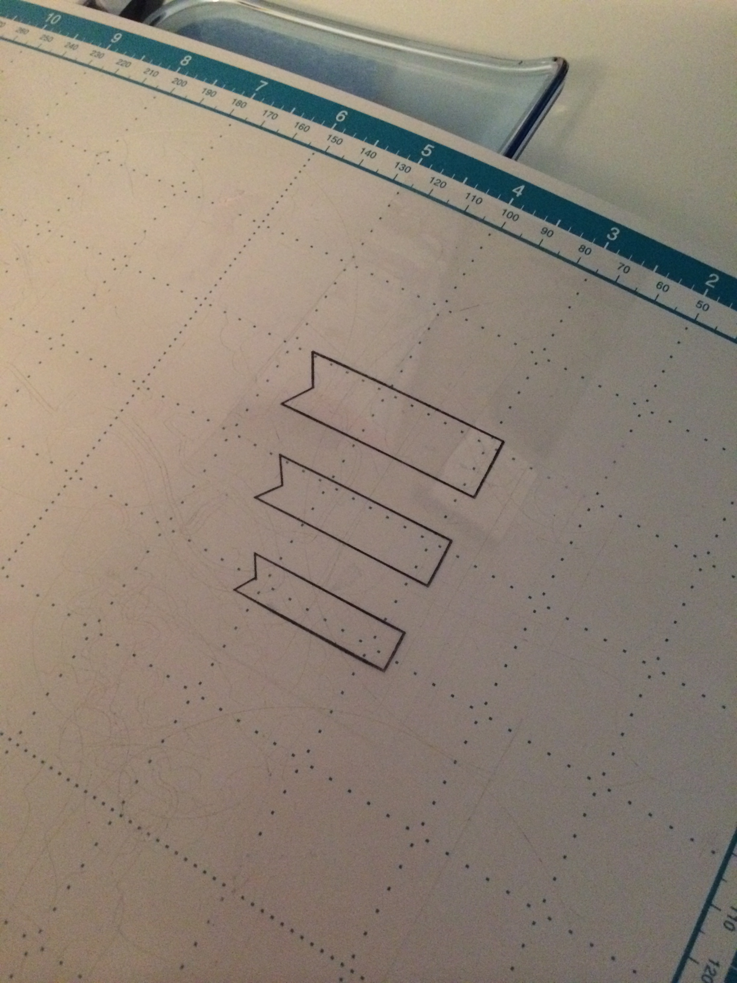 Next I stamped the F235 Triple Banner Stamp unto the patterned paper and slid it in under the acetate and matched the lines up.