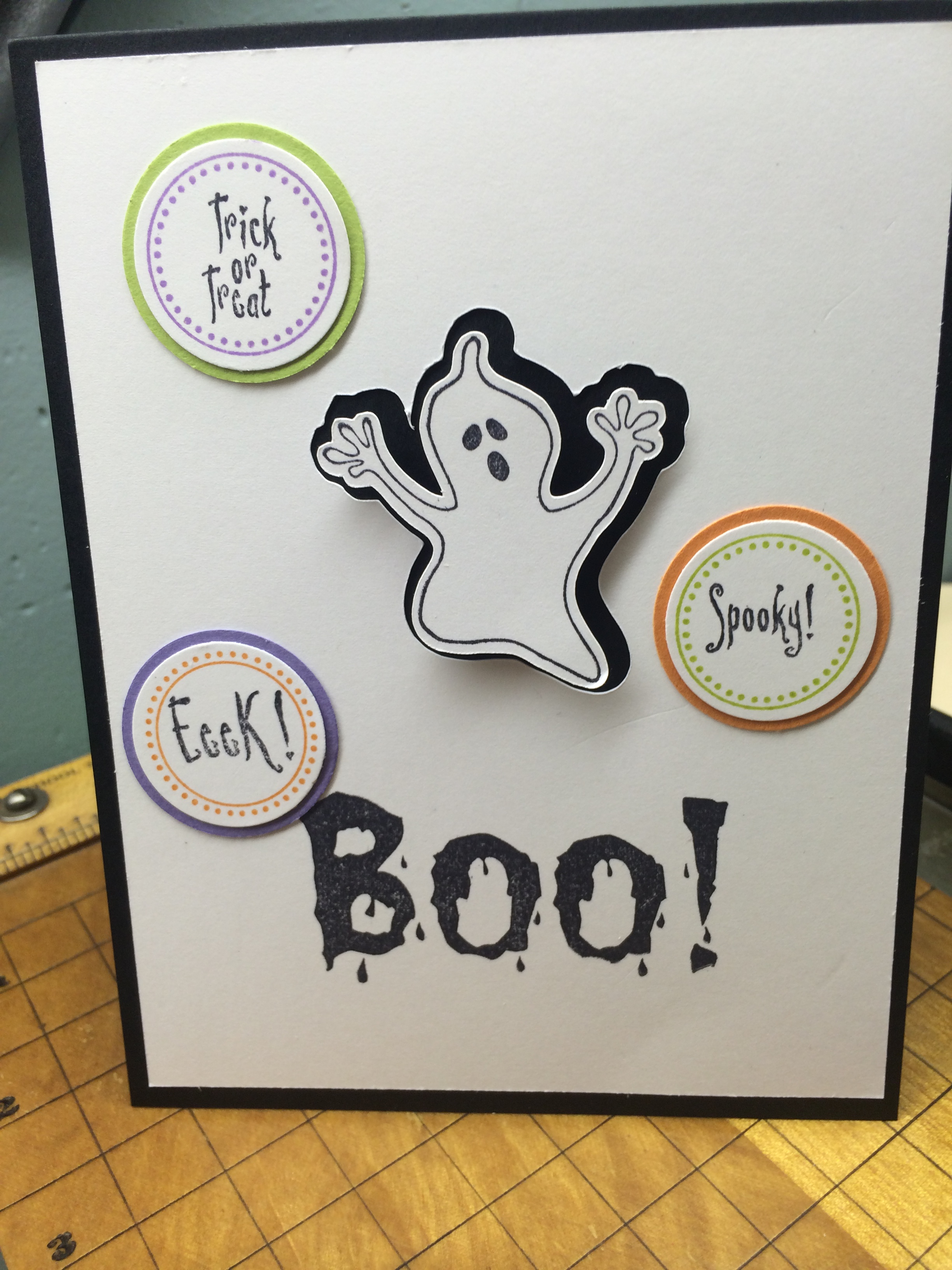 Stamps Used: EE50 KB’s Ghost, DD60 Circles & Dots, DD65 Halloween Fun cube, F176 Boo!