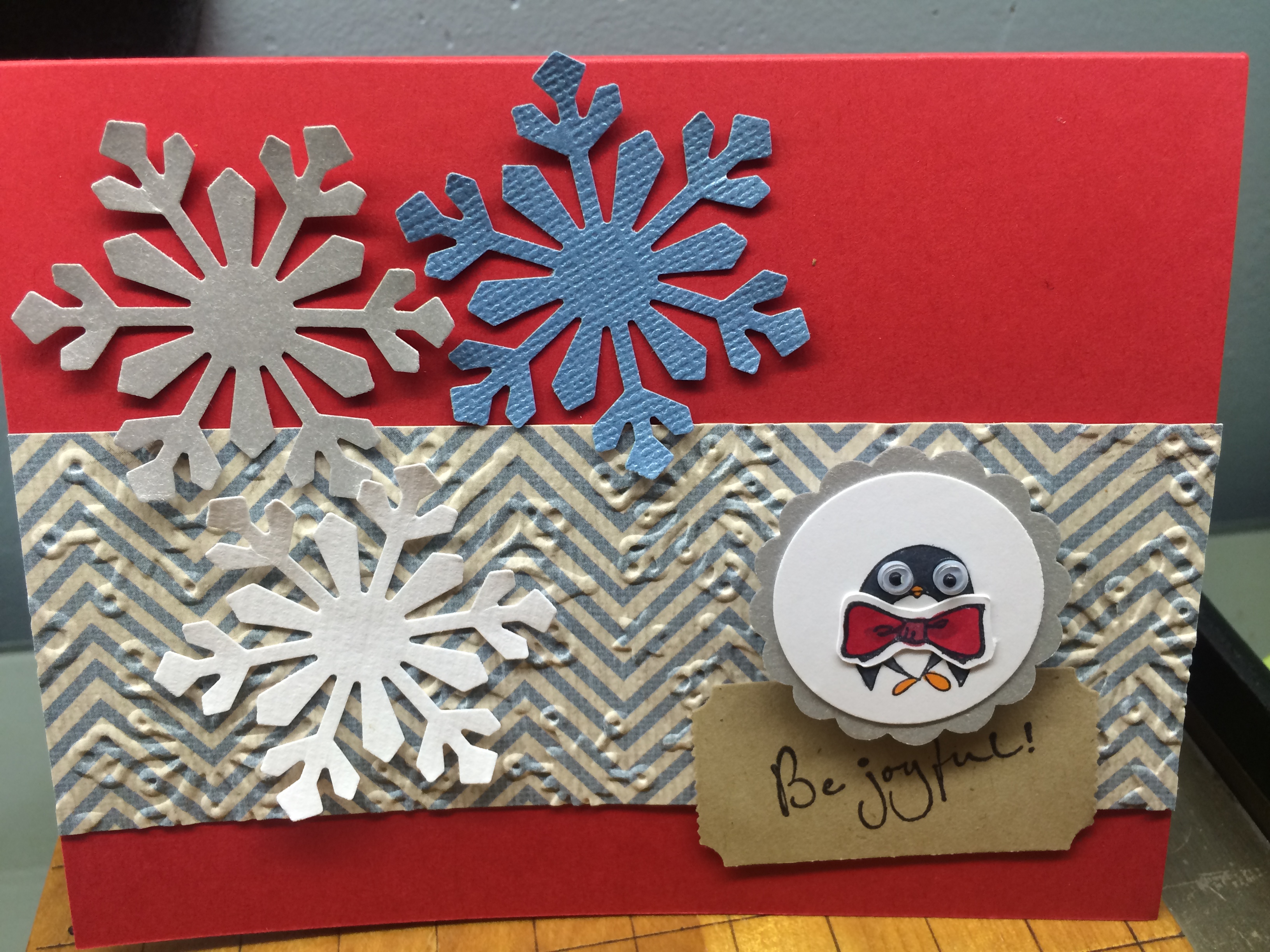Love this cute little penguin with his large bow tie. Stamps Used: A244 KB’s Bow Tie Sm, A245 KB’s Penguin sm, C217 Be Joyful!