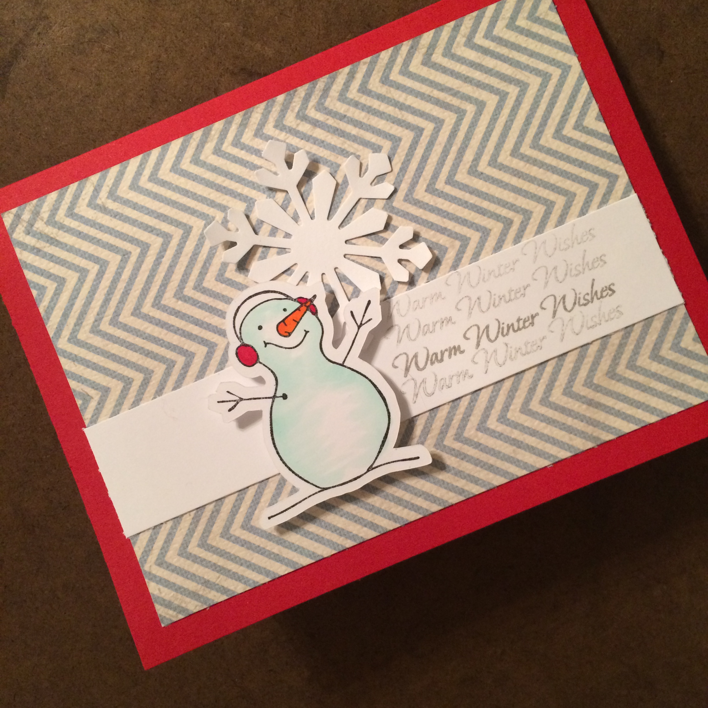 Karissa send me this card and I love how the brother machine cuts out the snowman…so precise and nice.  Remember that brother is offering a $50 gift card for purchasing a machine until Saturday the 13th!  I also like how Karissa used the Warm Winter Wishes by 2nd & 3rd generation stamping.  Stamps Used:  EE47 KB’s Ear Muff Snowman, Lg; C186 Warm Winter Wishes