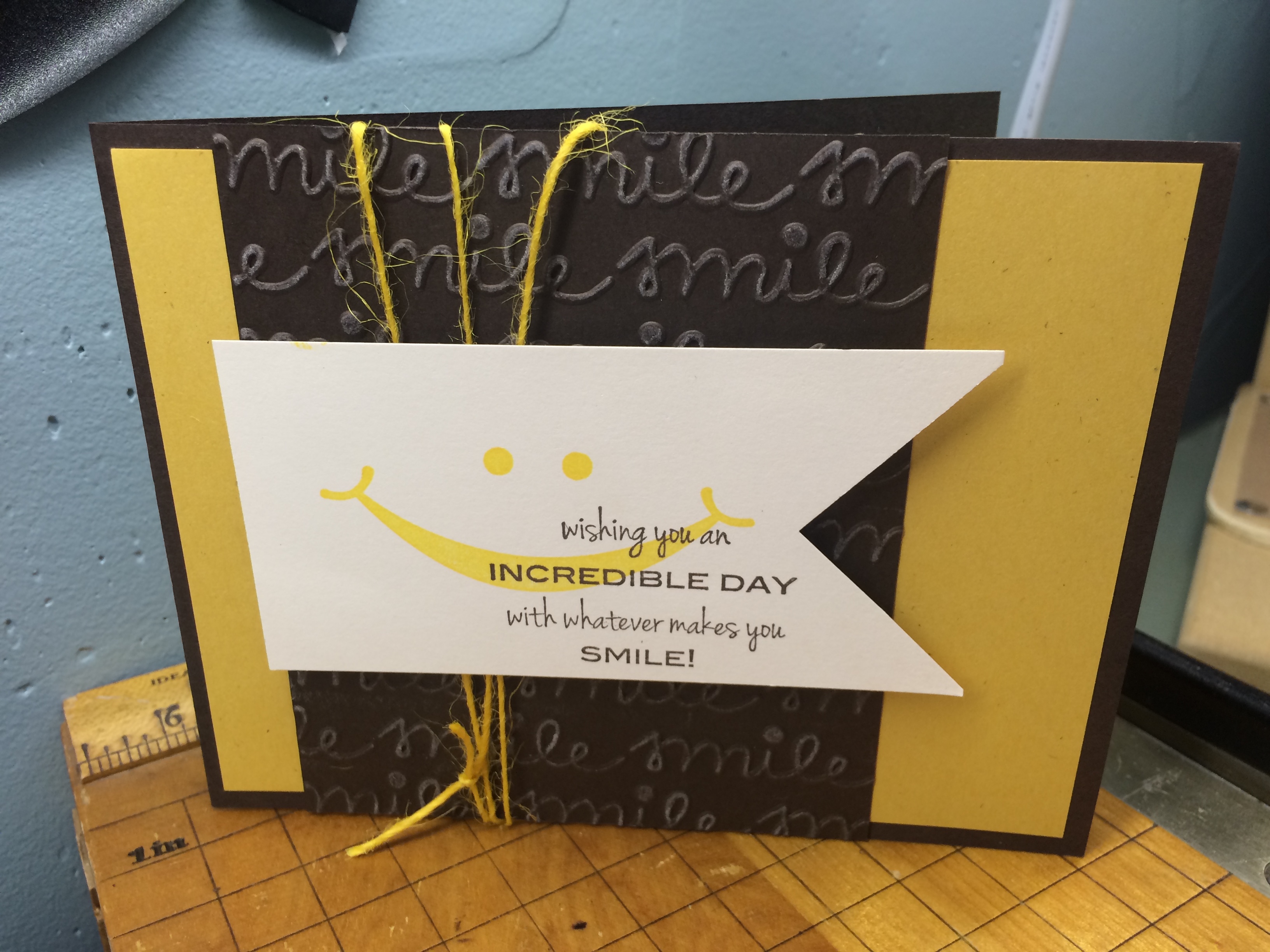 We have made the incredible birthday stamp into a incredible day stamp! We should have these new stamps on the website within the next few weeks. I also love the smile embossing folder. Always good to smile.