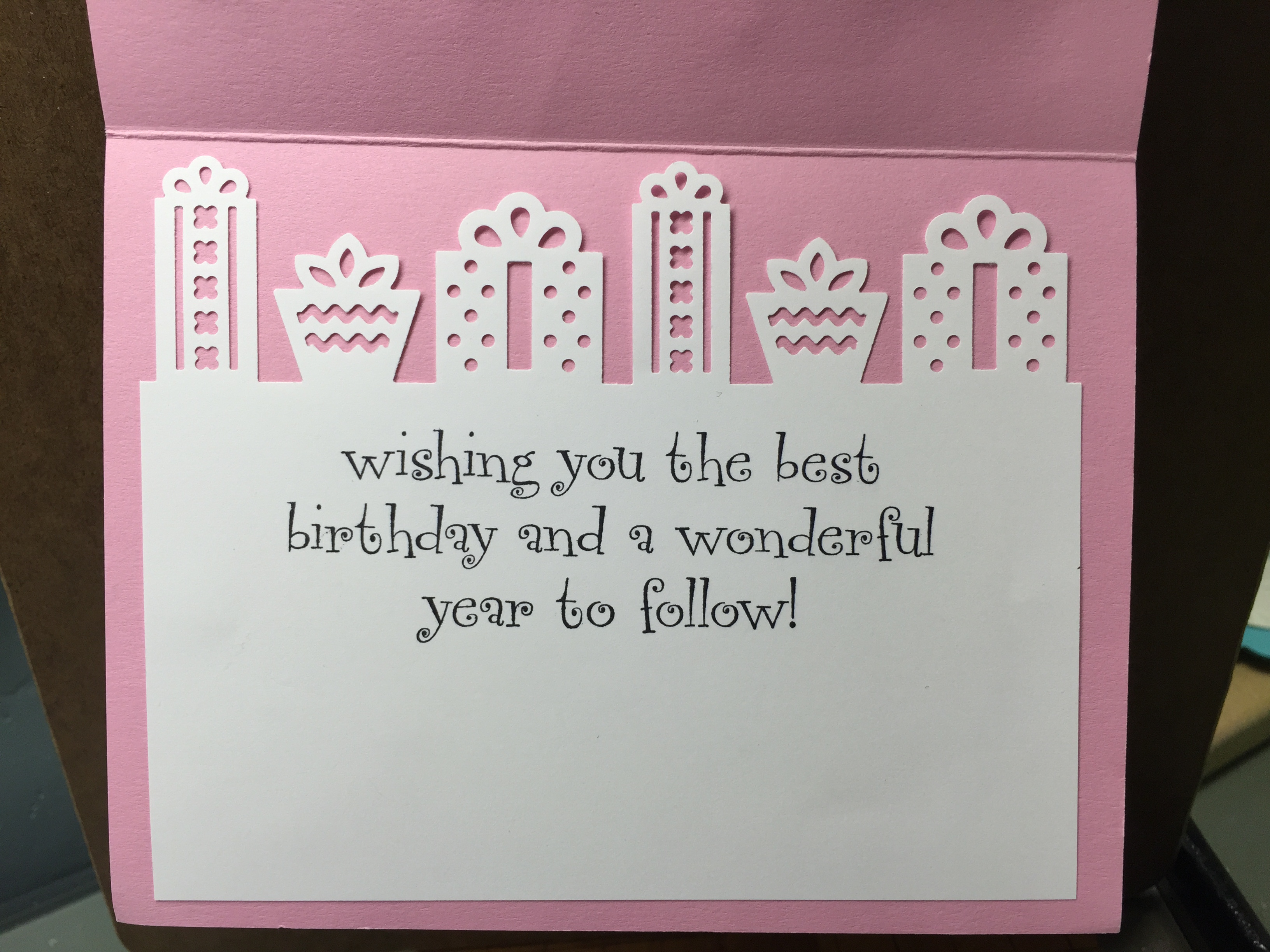 Stamps Used: AA10 Dual Dots, B68 Block Circle small, C22 Block Circle Med., G207 Birthday and Wonderful year, F237 KB’s Birthday Present Lg