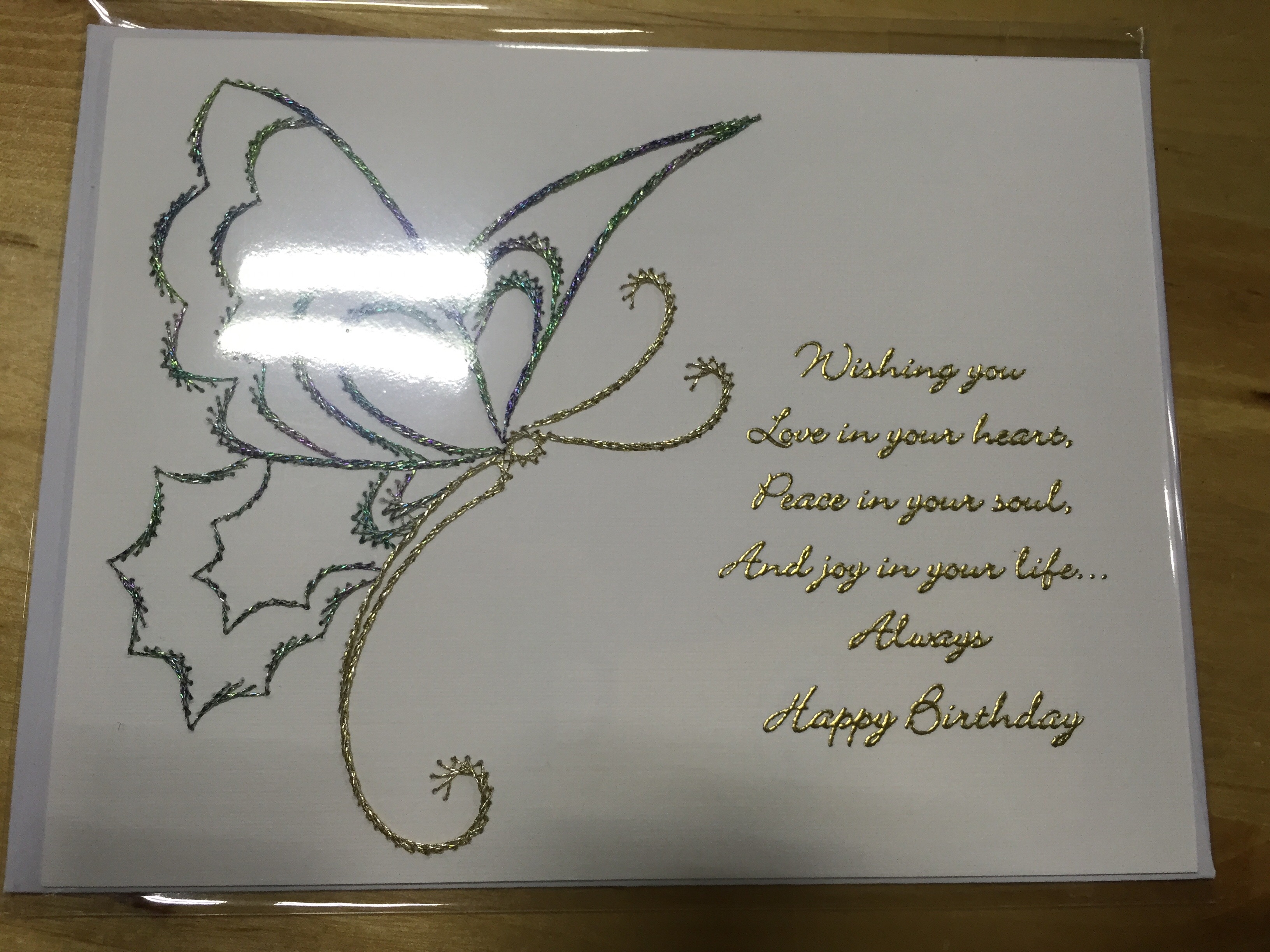 so sorry about the quality of this picture! This card was brought to me at the West Springfield, MA show by the customer who made the card. Conditions at the show were not good for picture taking! BUT the card was beautiful! I carefully put her name in my phone so I would know who to give credit to but of course I deleted her name. why? because I couldn’t figure out why I had this random name in my phone. Oops! I do need to do better note taking but I always think I’m going to remember.