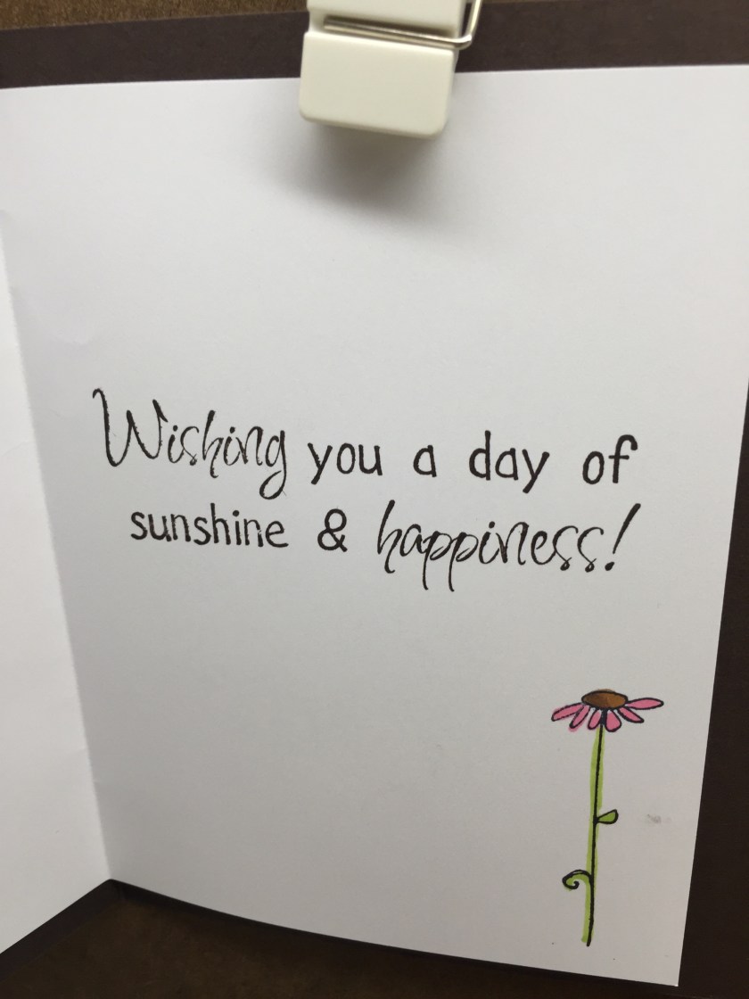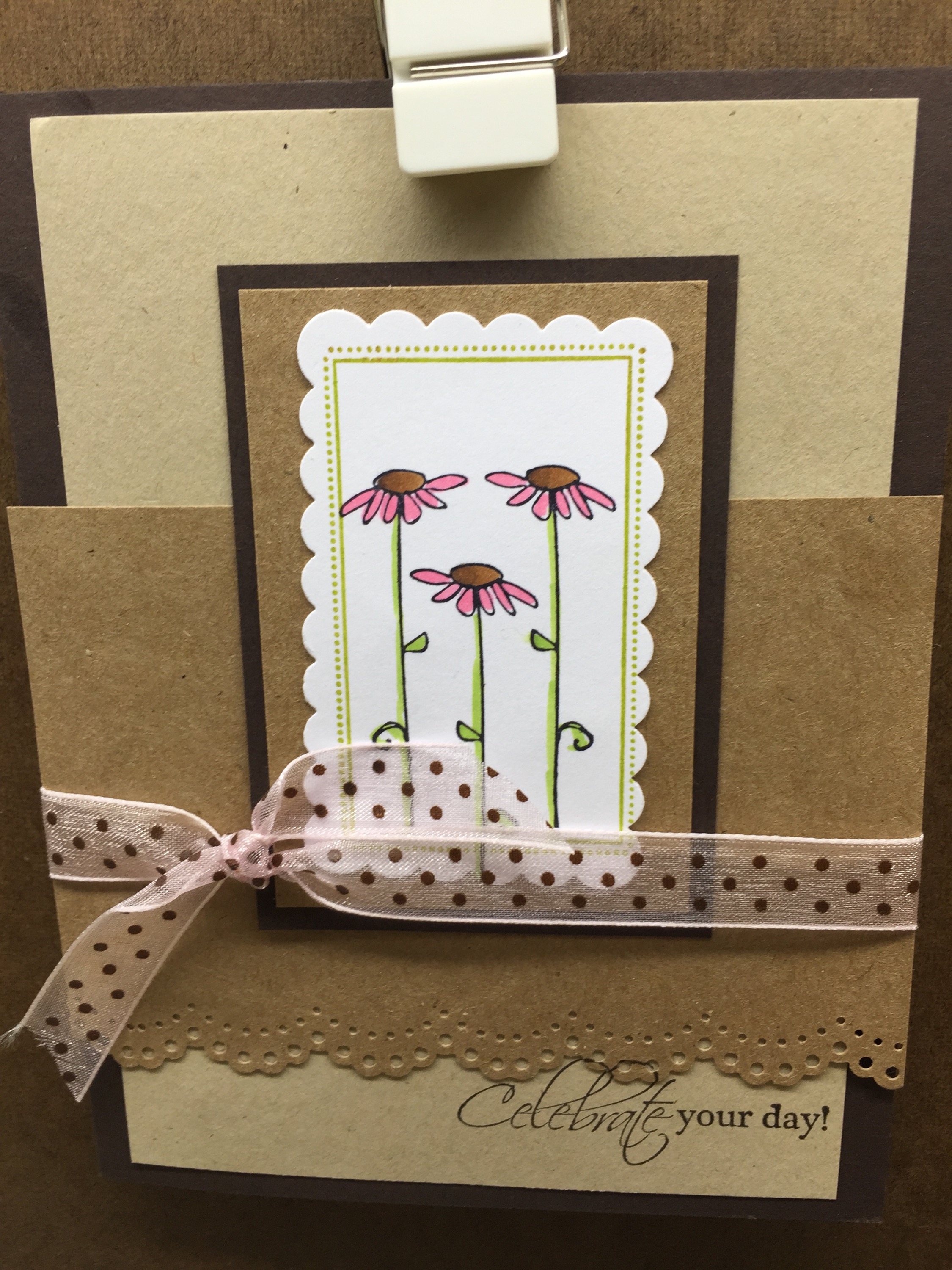 Simple card today!  Stamps Used: D313 Celebrate your day; DD81 KB’s Simple Daisy; F170 Wishing Sunshine; F210 Rectanlge Dots