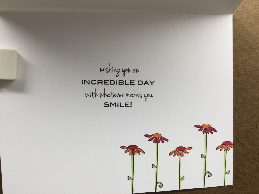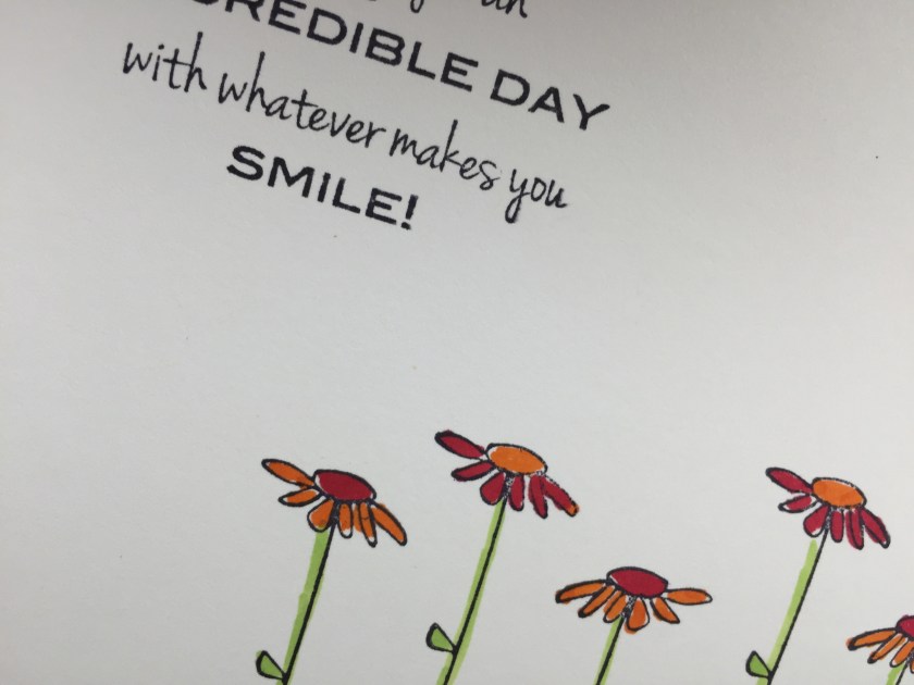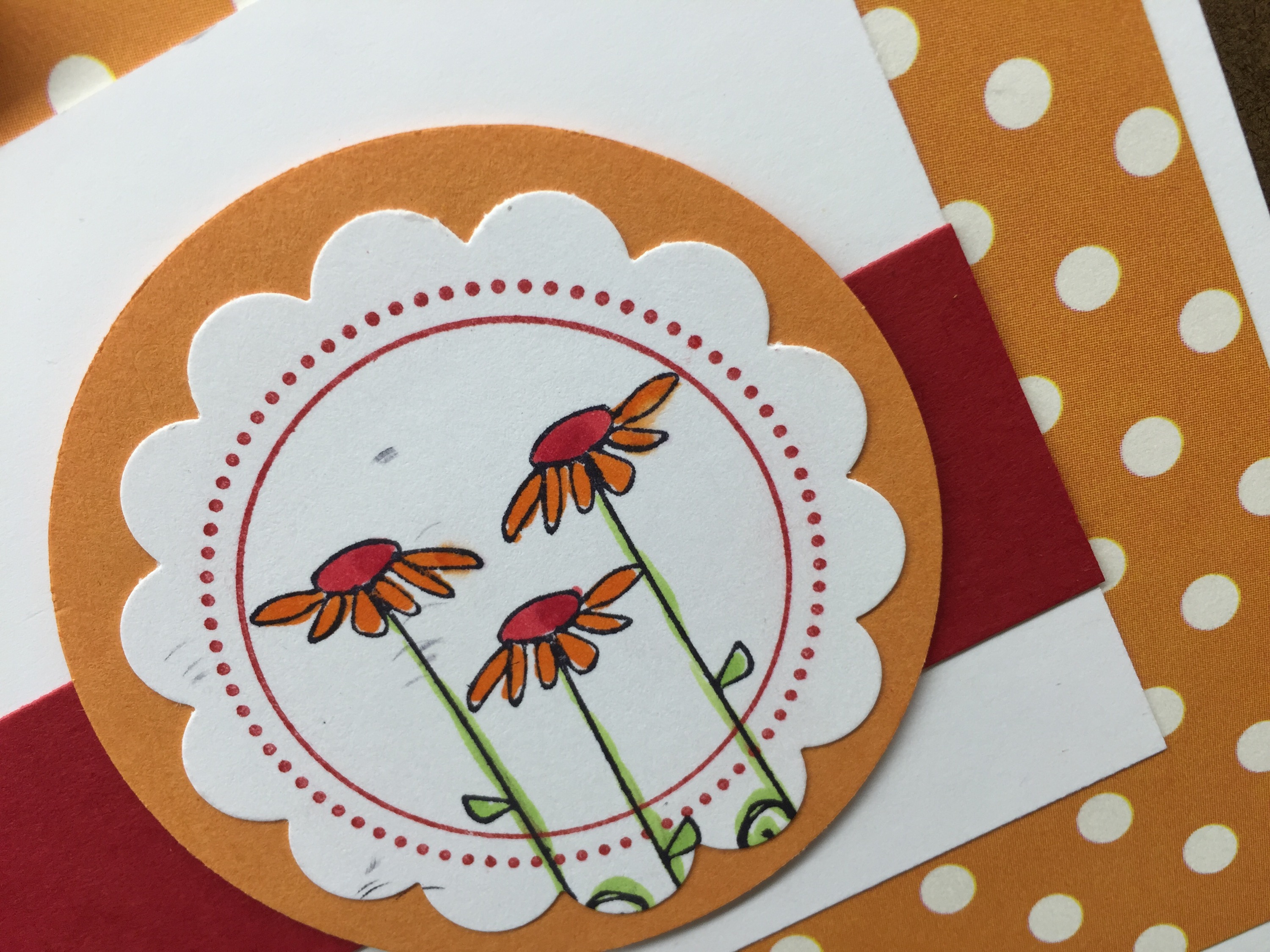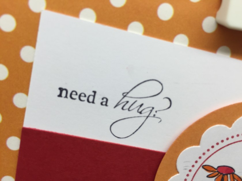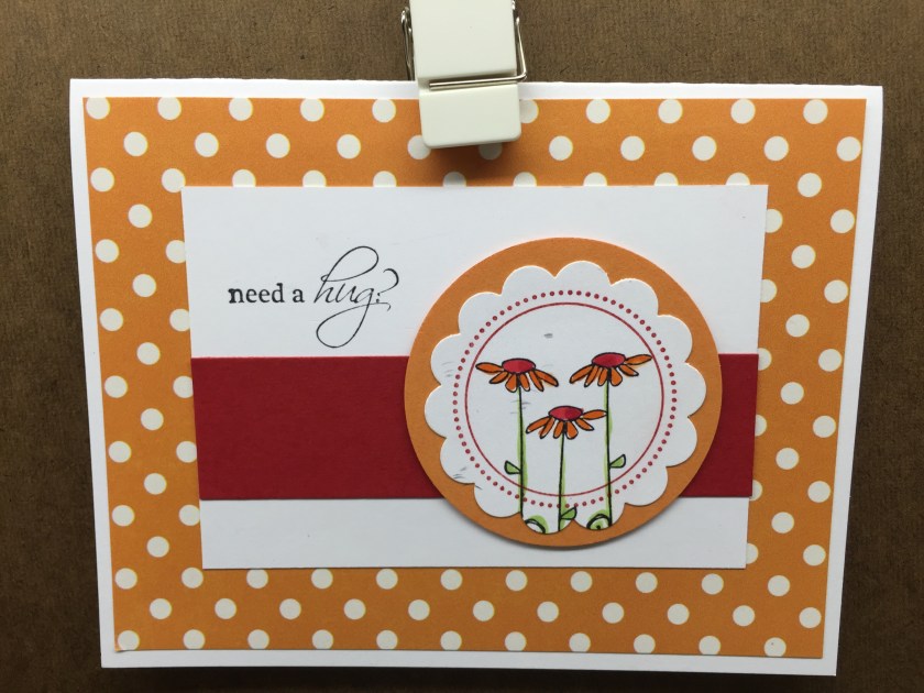 Polka dot day Three Friendship, Hello, Just a Note, Thinking of You Stamps used : C283 Need a Hug?; D298 Incredible Day; DD81 KB’s Tall Daisies med; EE41 Dots & circles;