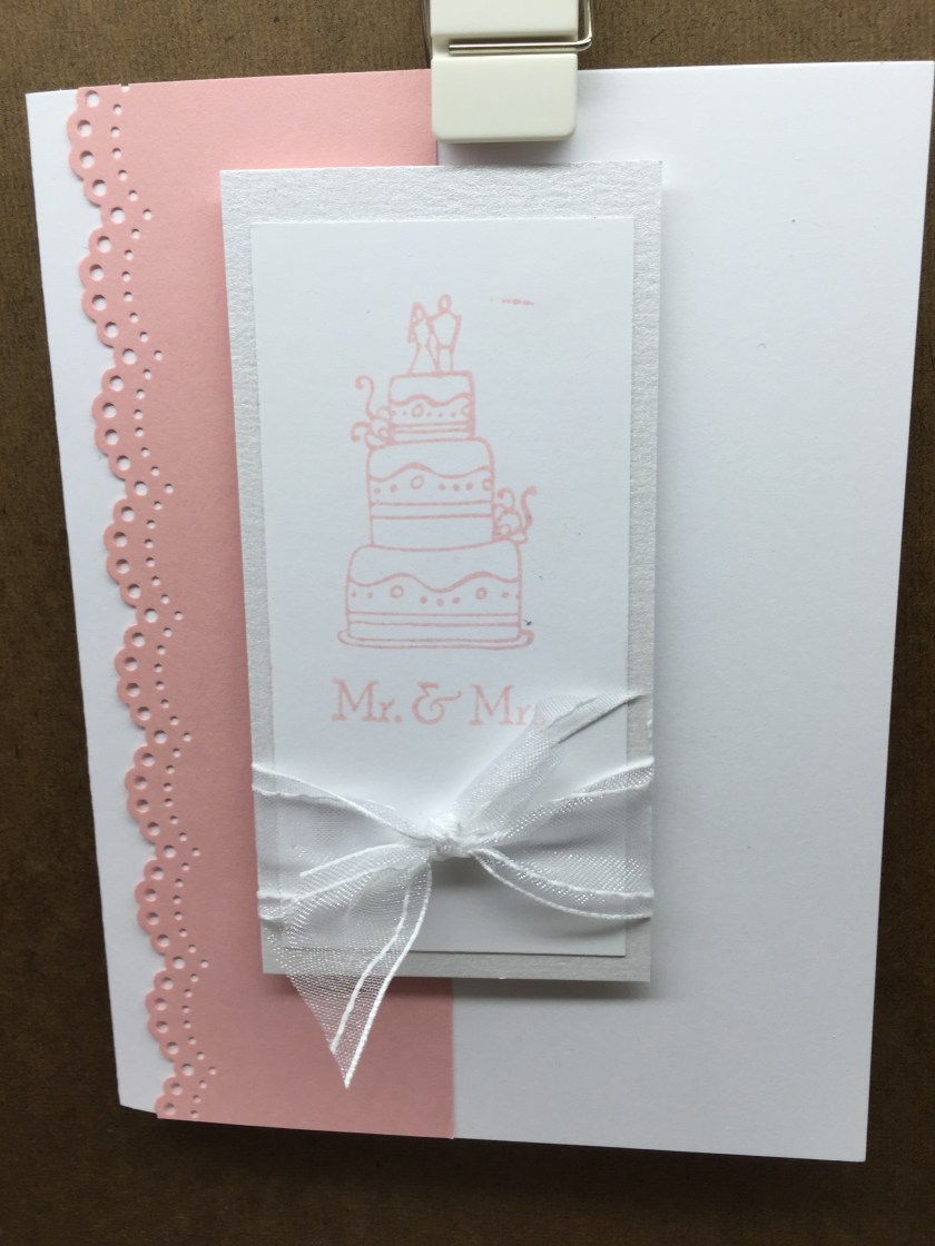 We had a really big crazy weekend. Lots of projects going on and a Wedding! It was a pink wedding…hence the color of today’s card. It was a beautiful wedding! Congrats to Brendon & McKenna.
