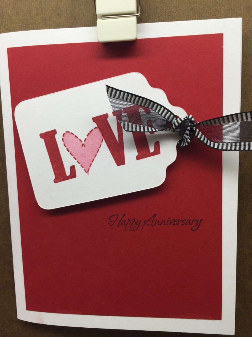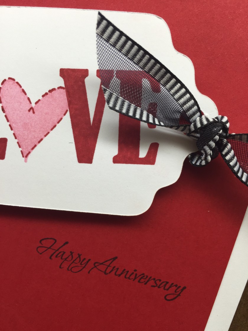 Stamps Used: A188 Stitch Heart; A186 Solid Heart; B150 Happy Anniversary; E252 Open Love; G89 Your Love Inspiration