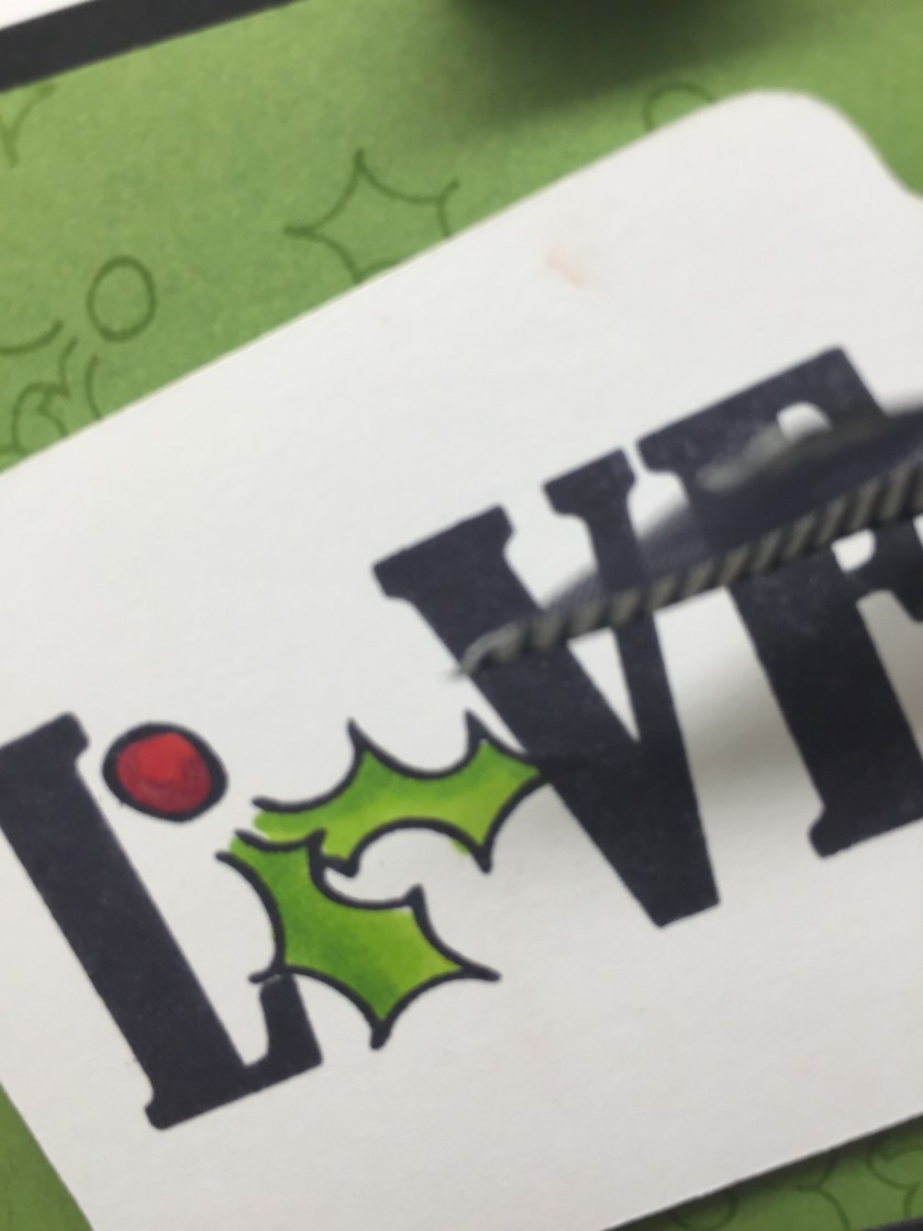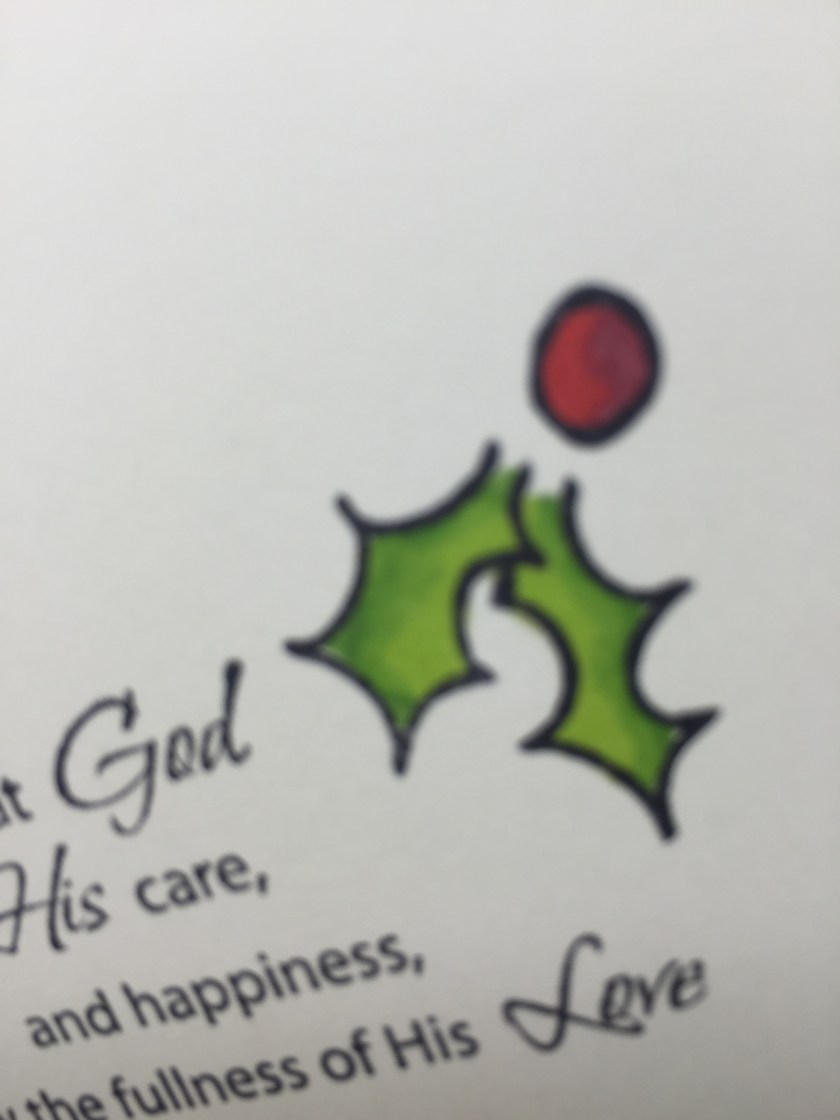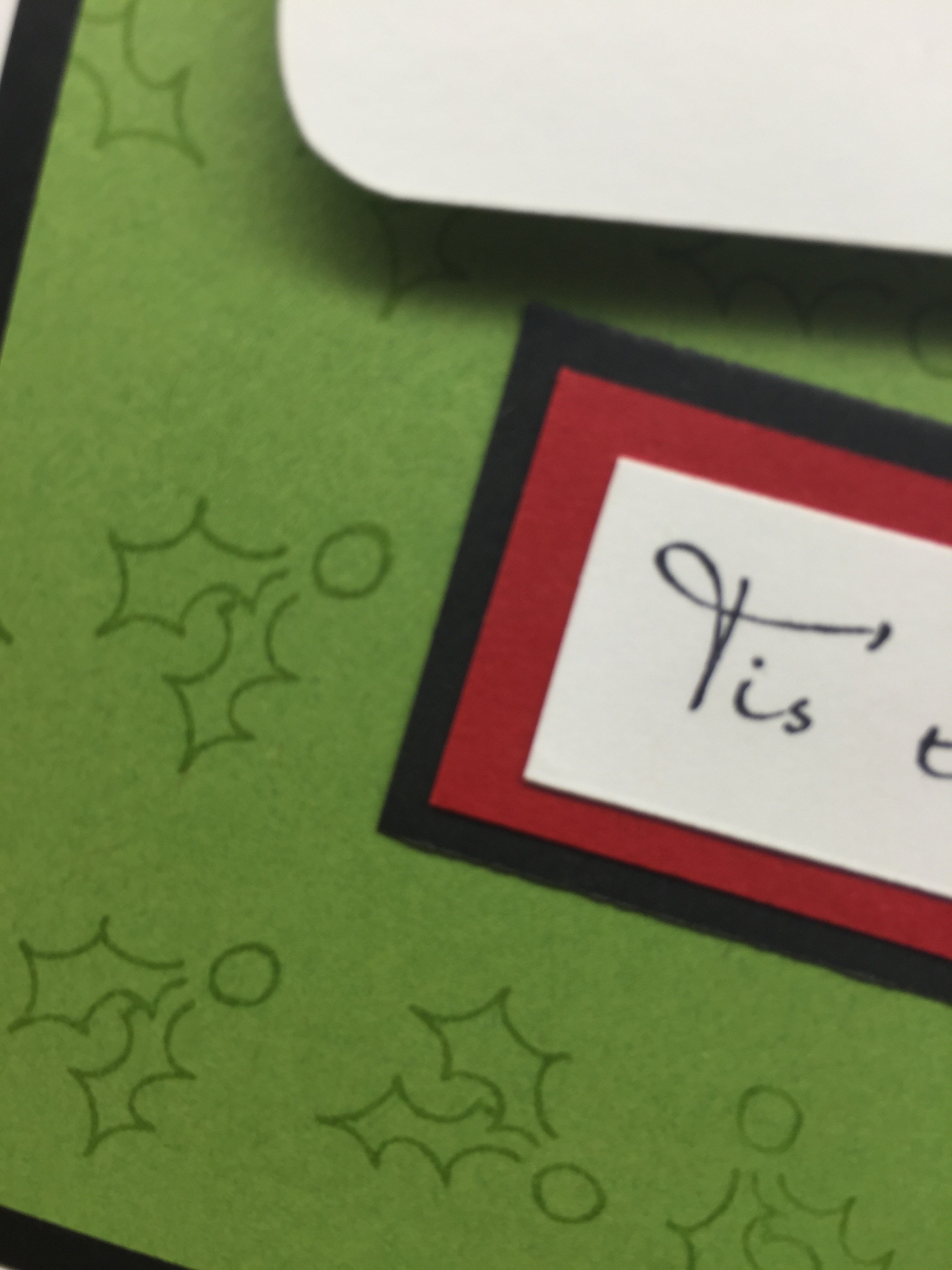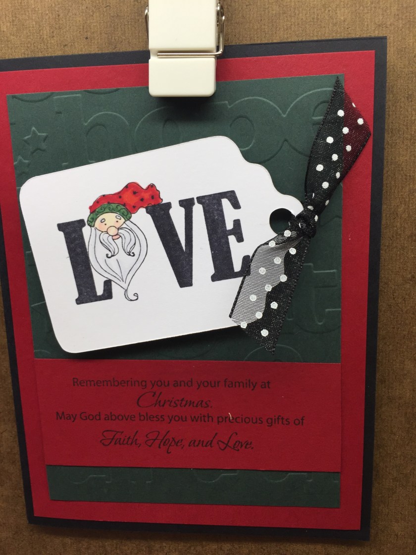 Stamps Used: B143 Merry Christmas; B250 KB’s Single Holly; C219 Tis the Season; E252 Open Love; H122 Holly Border; G290 God His Care