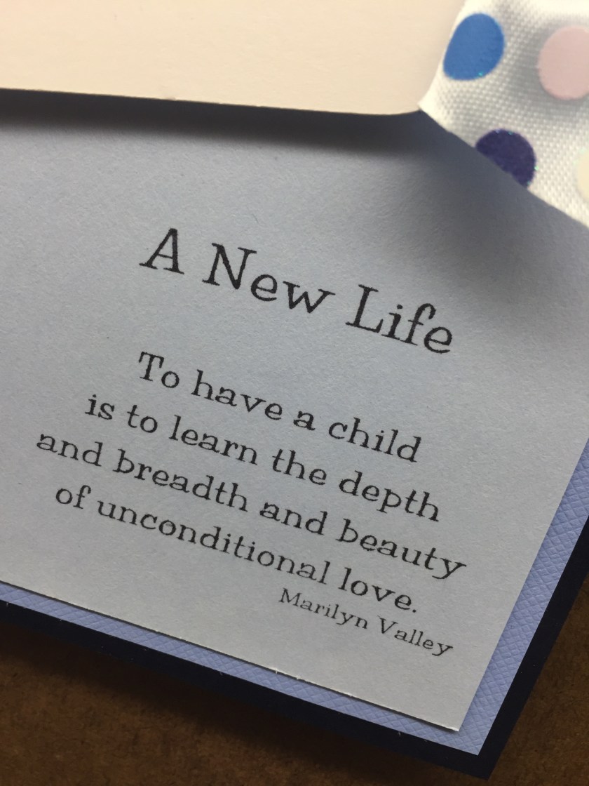 Stamps Used: A190 Tiny Heart; B115 Heart Onsie; E252 Open Love; F114 A New Life; F232 A Bundle of Joy