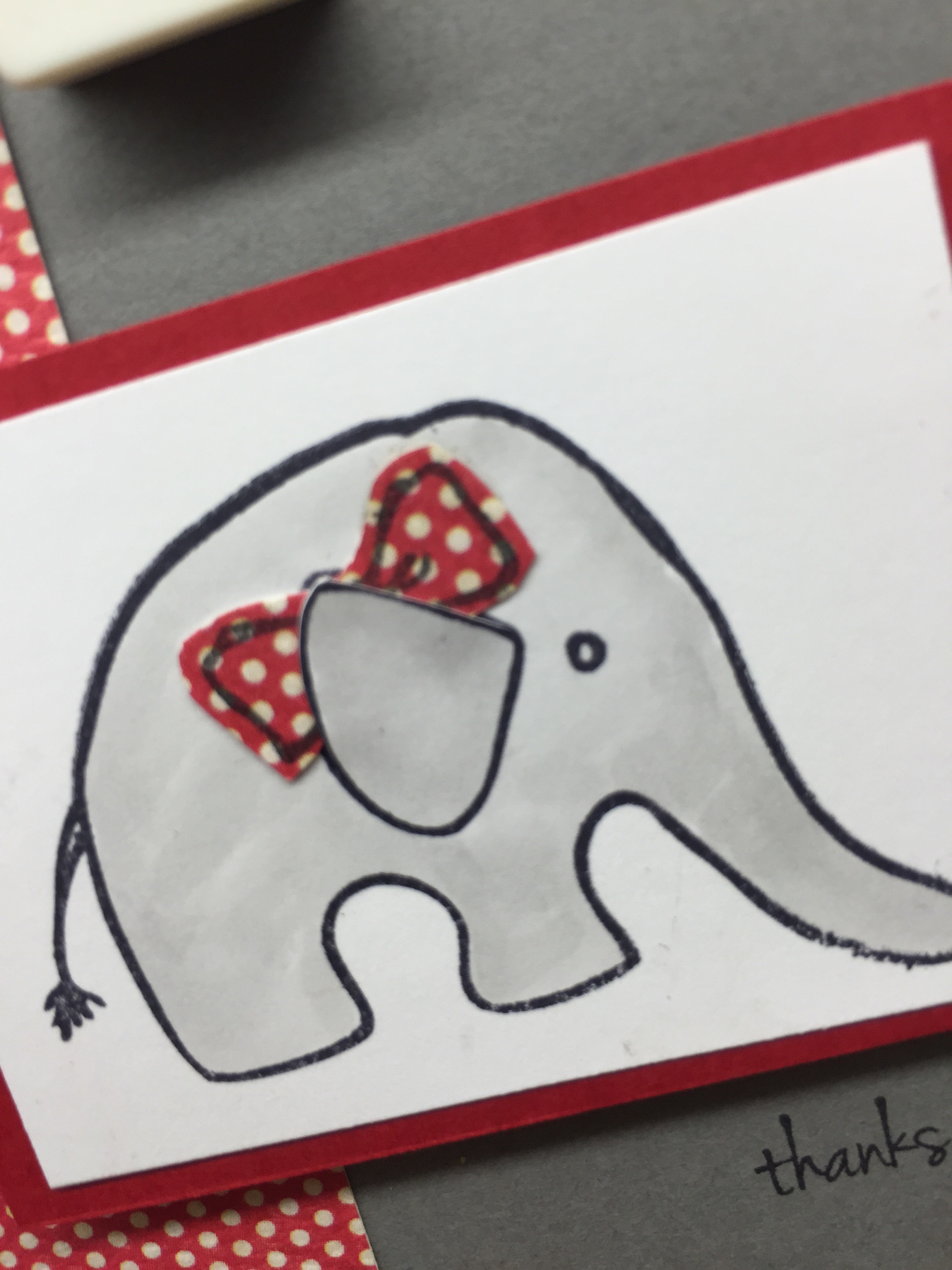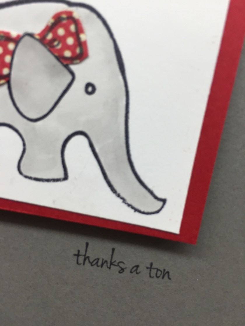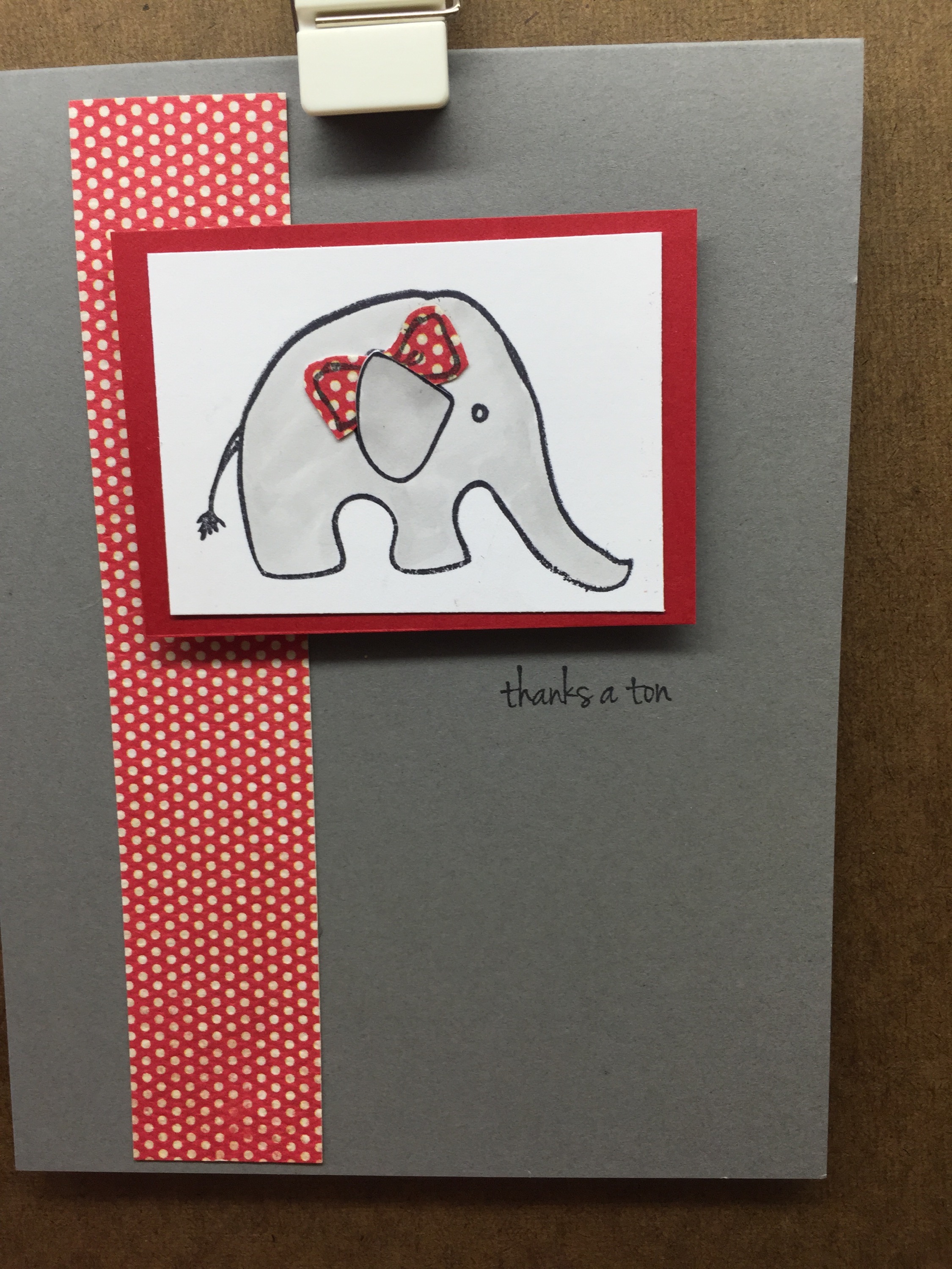 Stamps Used: DD54 KB’s Baby Elephant; A244 KB’s BowSM; A246 thanks a ton