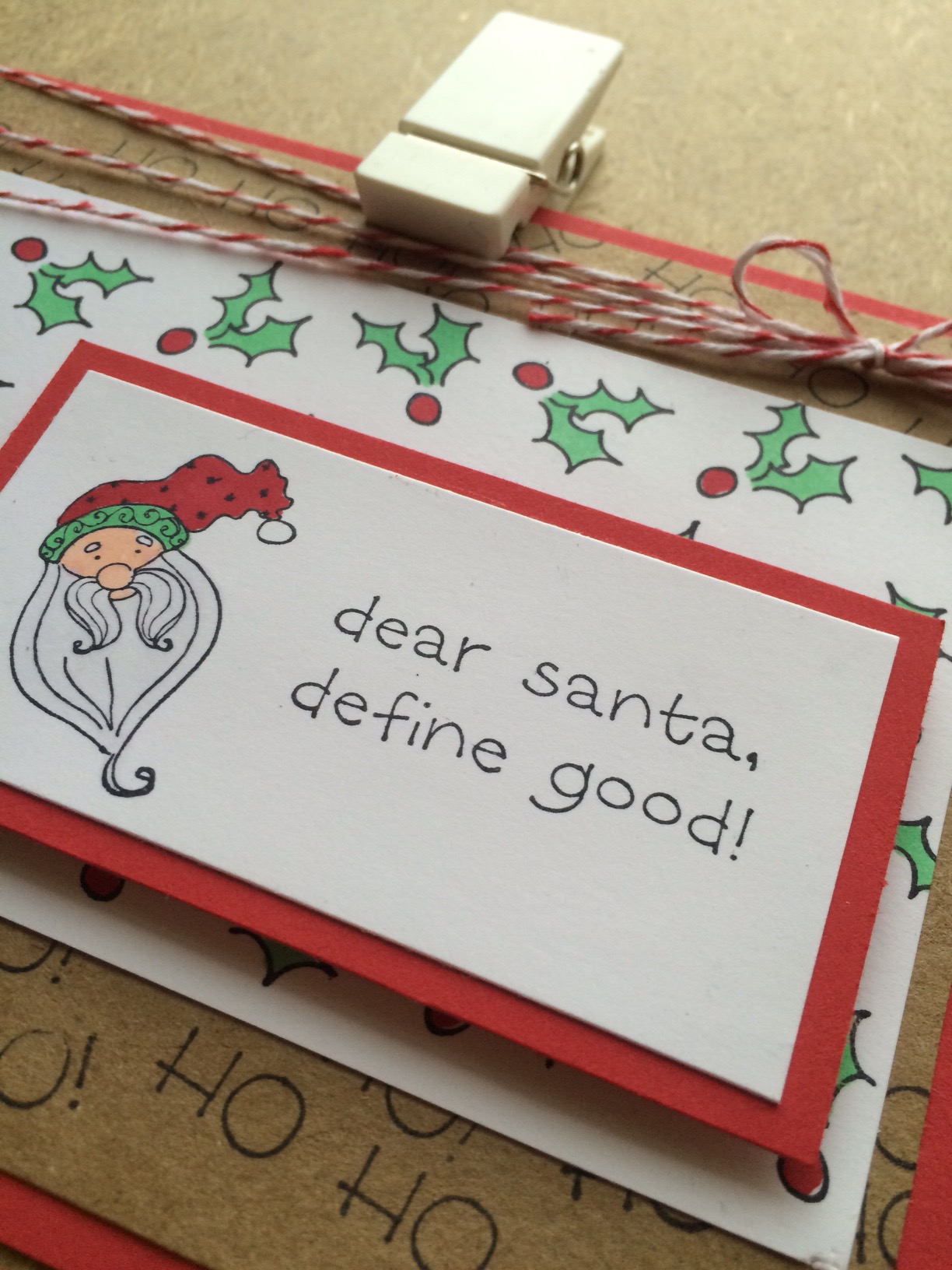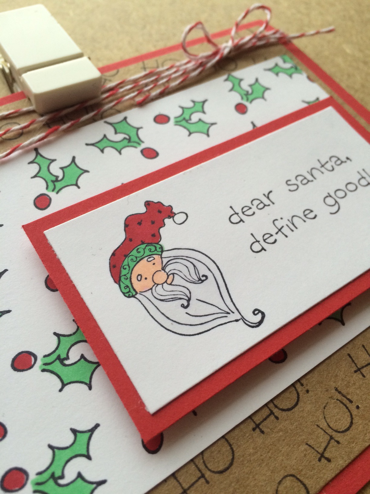 Stamps Used: D233 KB’s St Nick Med; A139 Ho Ho Ho; H122 Holly Border; C111 Dear Santa;