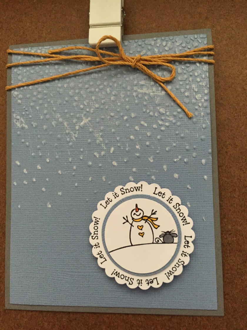 Stamps Used: F156 Let it Snow Circle; JJ16 Snowman Border;