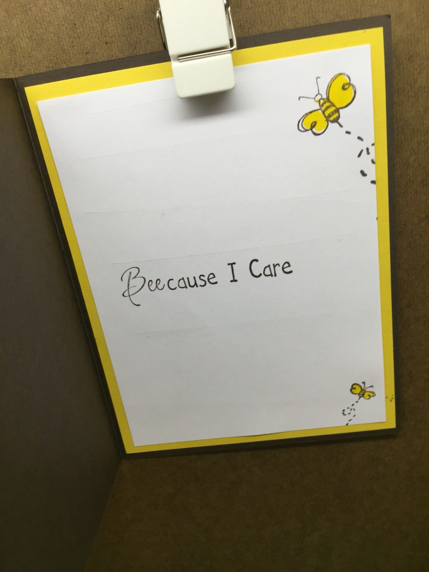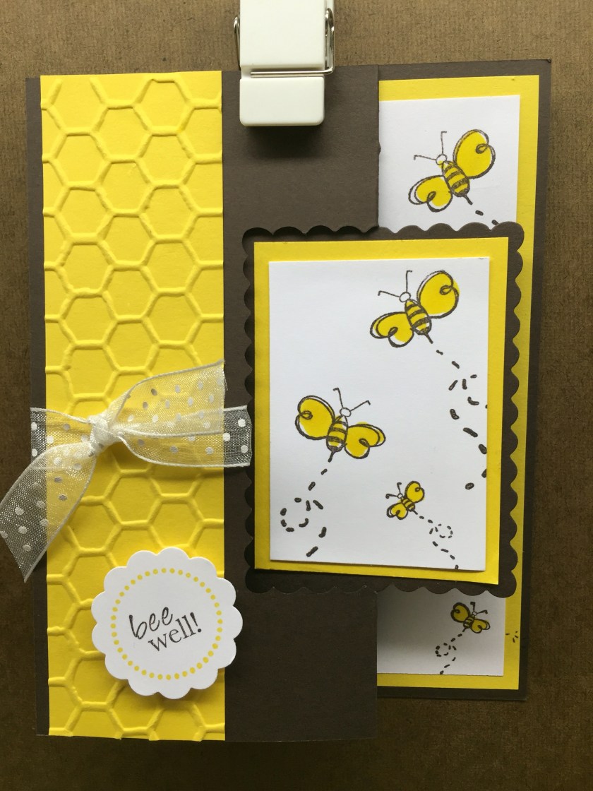 Stamps Used: DD57 Bee Fun Cube; DD63 Dots & Lines; D163 Beecause I Care; EE19 Bees Lg; CC31 Bees Sm;