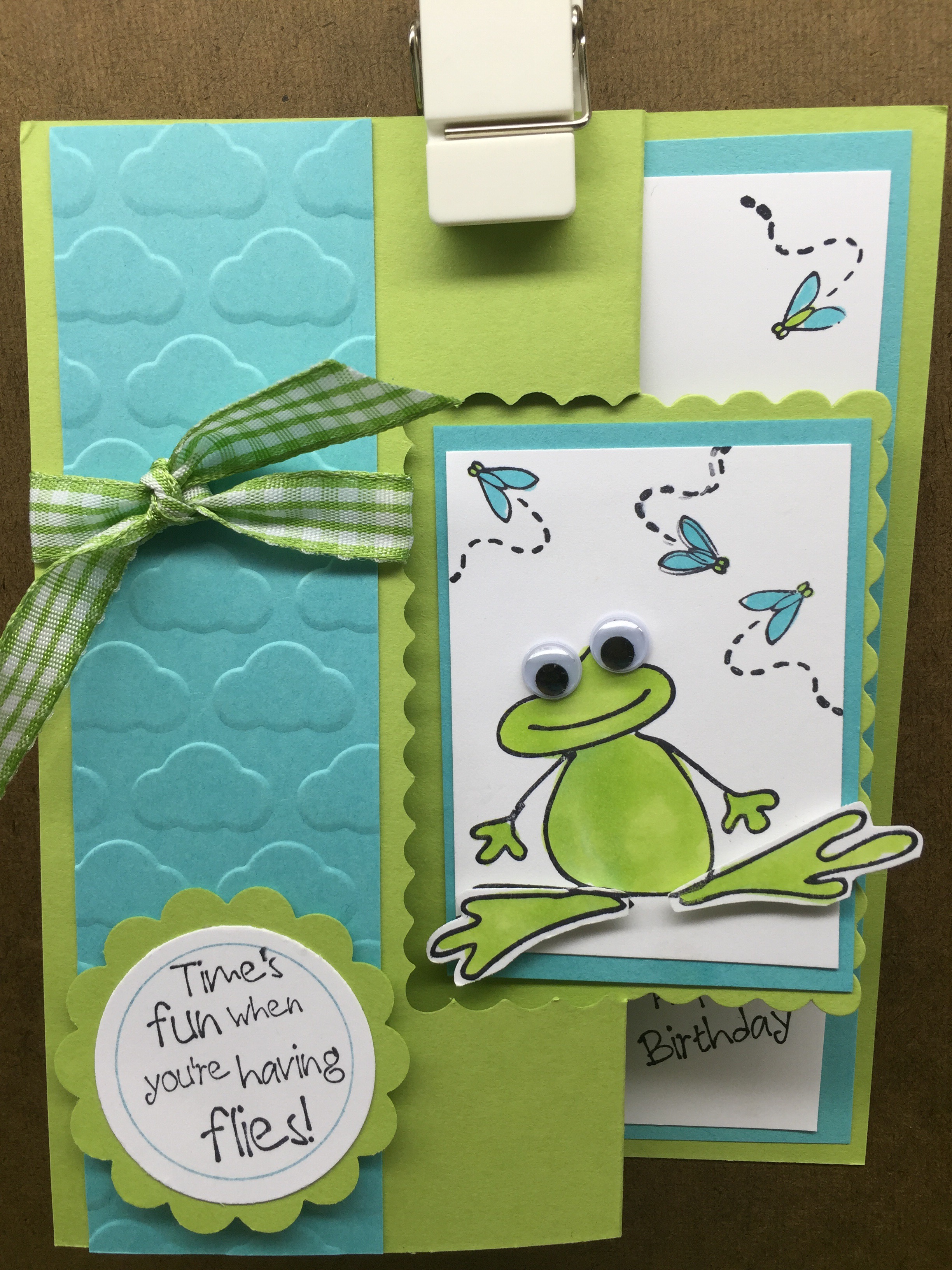 Stamps Used: F204 KB’s Frog; A220 Hoppy Birthday; F215 Unfrogetable Bday; B204 Times Fun; BB54 KB’s Flies; DD63 Dots & Lines;