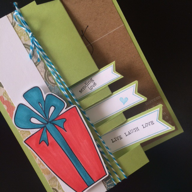 Stamps Used: E43 happy birthday ; F235 Triple Flag Banner; DD59 Sending Fun Cube; F237 KB’s Present lg; A190 Tiny Heart;