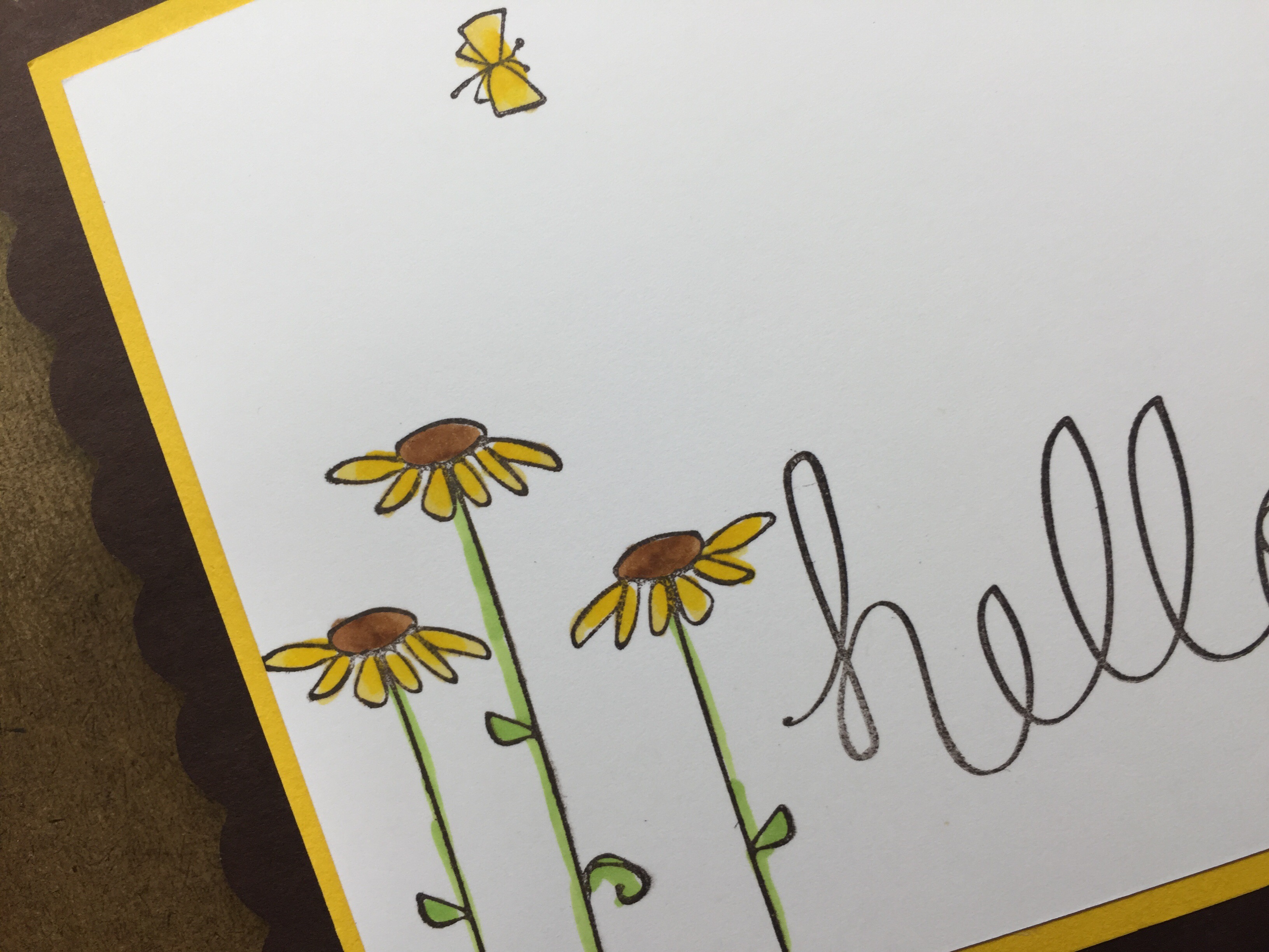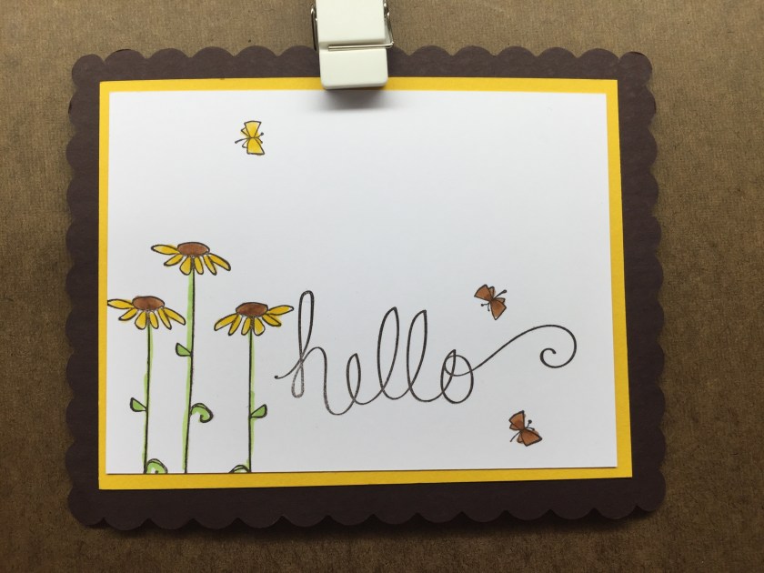 Stamps Used: AA32 Krinkle Butterfly Mini; EE56 KB’s Tall Daisy; G338 KB’s Hello script;