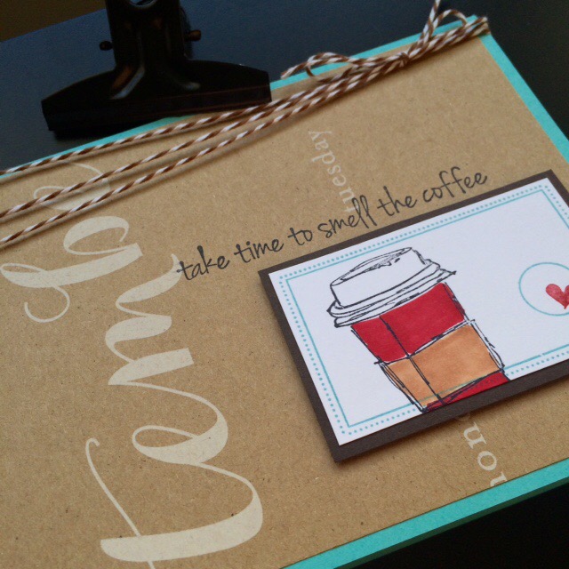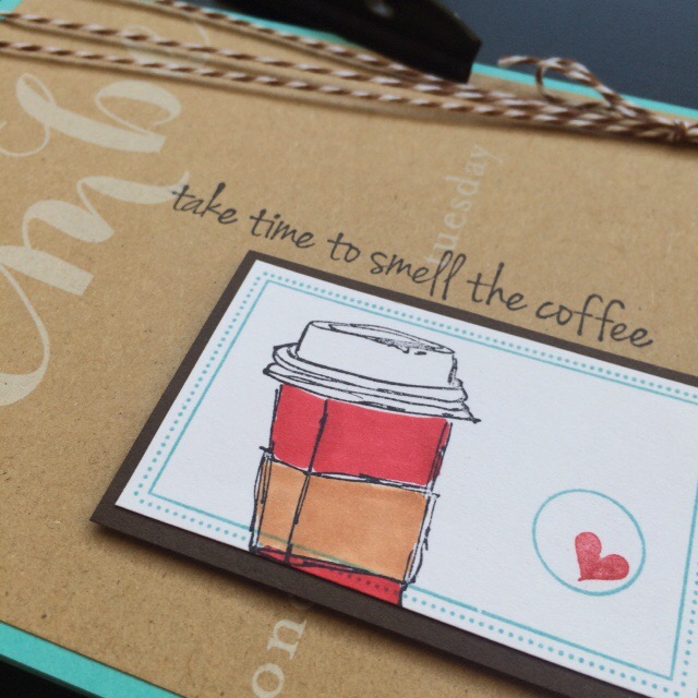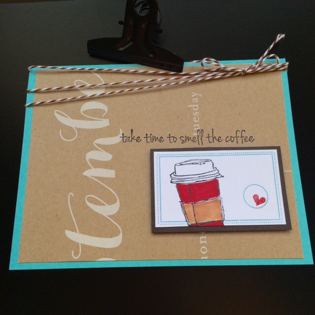 Stamps Used: A190 Tiny Heart; ( I think Karissa uses this stamp on every card she makes ! ) CC27 Tiny dots &!circles; F210 Fancy Rectangle; D217 KB’s Capp Cup; E263 Smell Coffee;