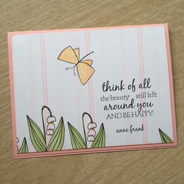Stamps Used: DD82 Krinkle Butterfly, Lg; E283 Beauty All Around; EE46 Lily of the Valley, Lg; HH28 Lines & Dots Combo Border;
