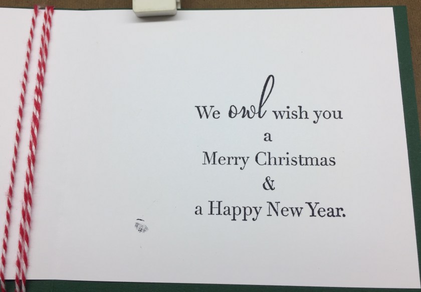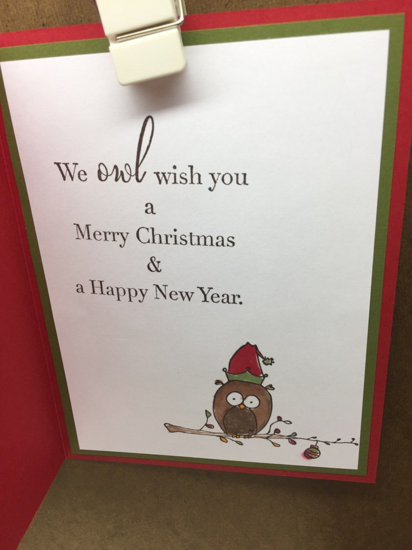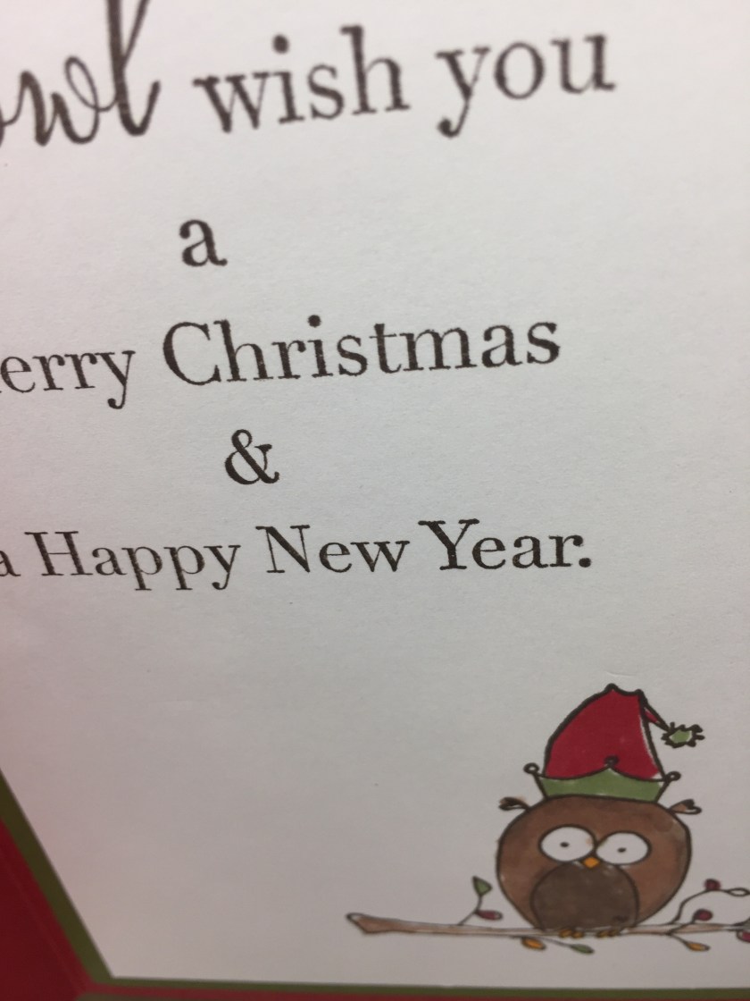 Stamps Used: FF40 KB’s Christmas Owl; D322 Owl is Calm; F250 Owl Wish;
