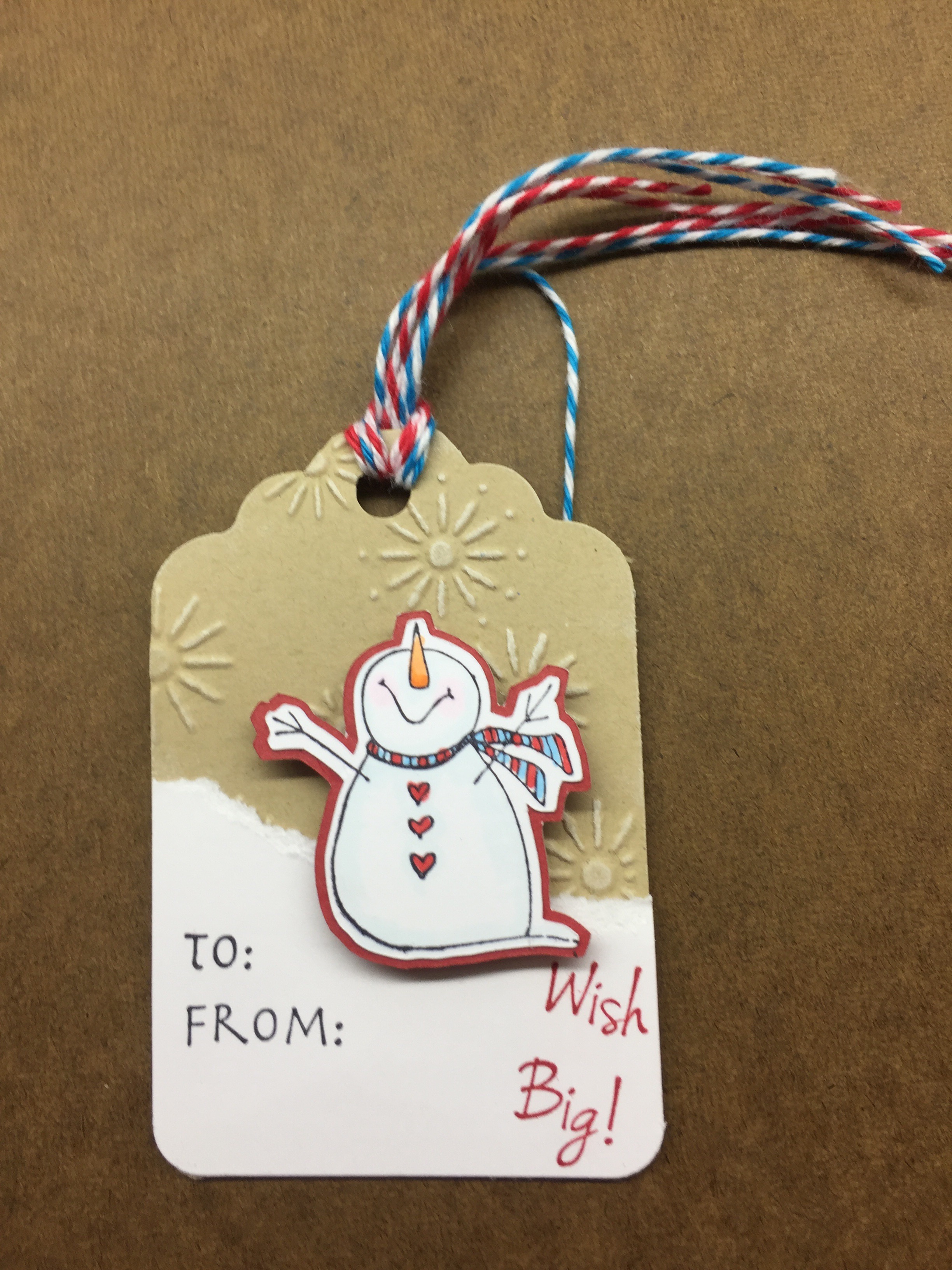 Another little gift tag today… used the brother scanncut for the snowman. I had to clean the scanner first. For you scanncut owners…if you flip your machine over (make sure it is unplugged!) and take out the white bar and clean inside there. It really helped my machine.