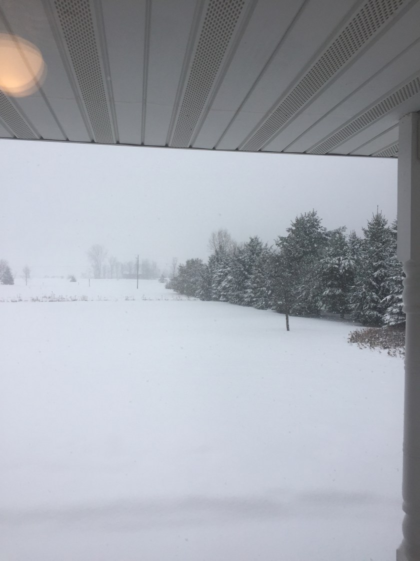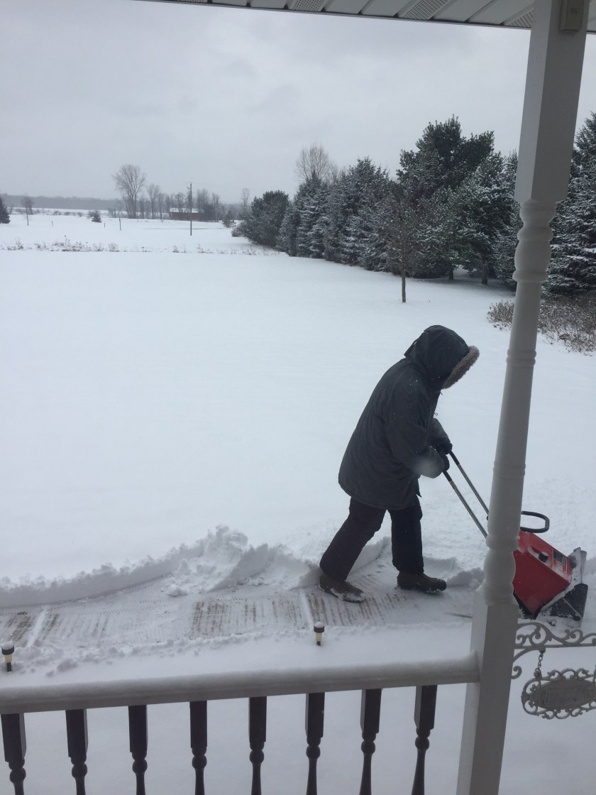 Good Day! The snow has continued all night and throughout the morning. It’s beautiful but it is complicating the packing of the trailer. Kevin has spent the morning plowing.