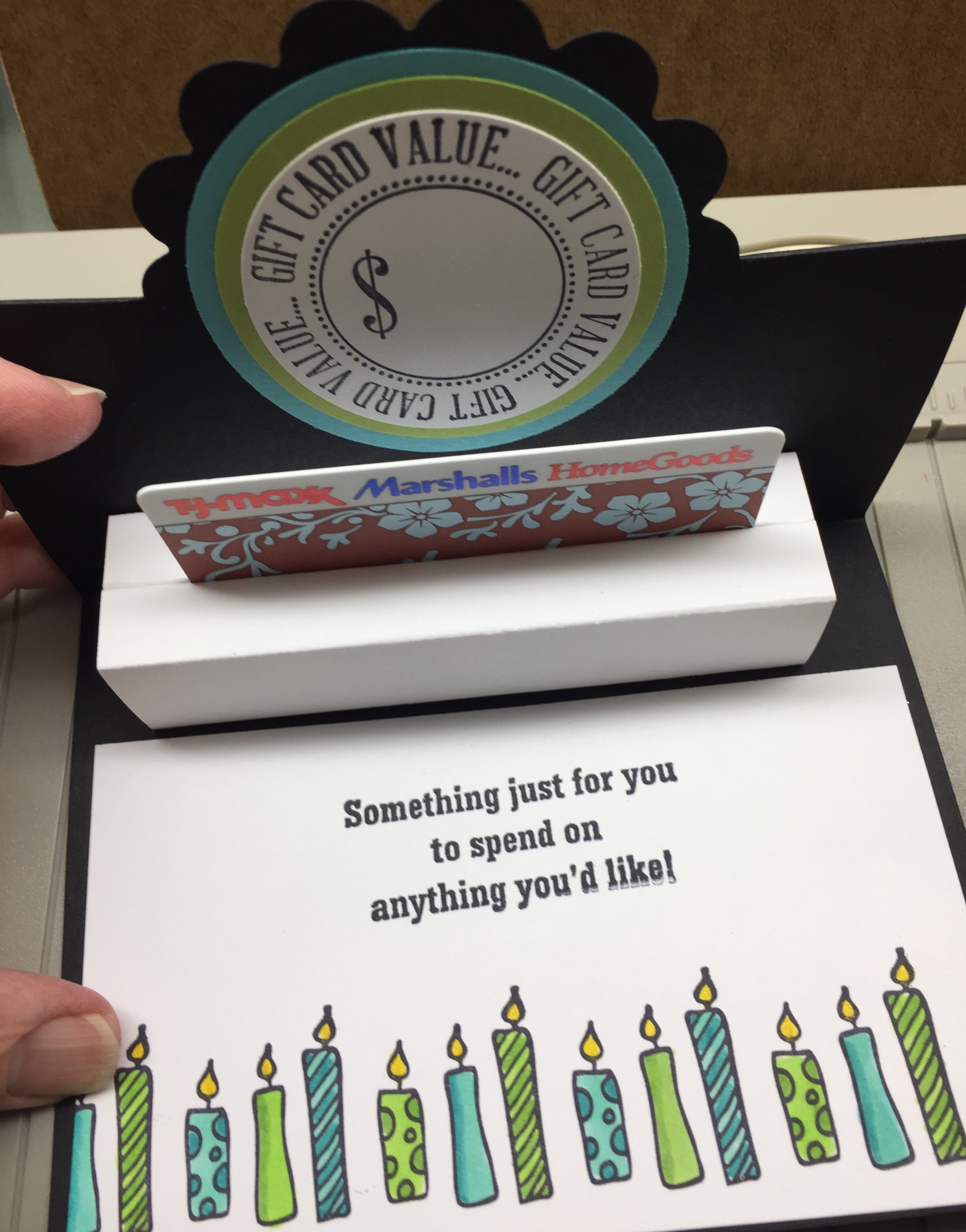 Stamps Used: F227 Gift Card Value; G317 Happy Birthday Border; J28 Candle Border;