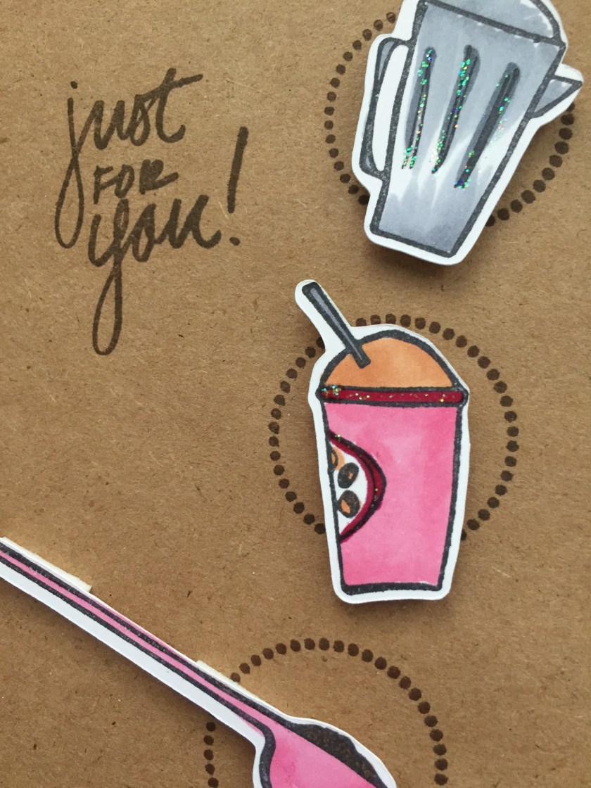 Stamps Used: D320 Just for You; EE25 Dots & Circles; CC79 Frappe Cup; CC80 Percolator; EE66 Coffee Scoop;