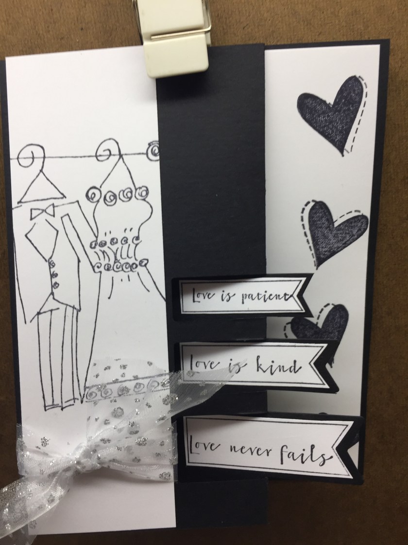 We have added some new make n takes! This card is one of them. We have room for a total of 36 so I decided to make sure we are utilizing all our space. We added two birthday and one anniversary.