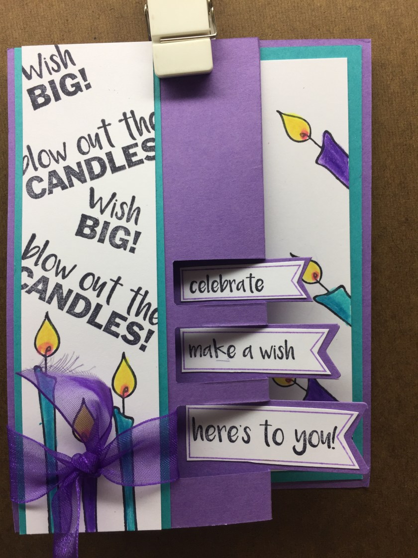 Stamps Used: B302 Wish Big; C302 Blow out Candles; DD91 Short Candles; EE53 Skinny Candles; F235 Triple Flag Banner; F259 Make a Wish Banner; F269 Ridiculous Happiness;